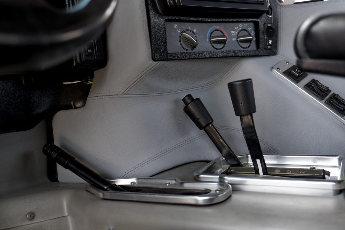 Kézifék, a hajtás kapcsolókarja, a váltókar és a középkonzolon az ablakemelőké, mivel elektromosak. Semmihez nem kell túl nagy erő, szépen elpuhították Amerikának, nem is gondolnánk, de egészen autószerű