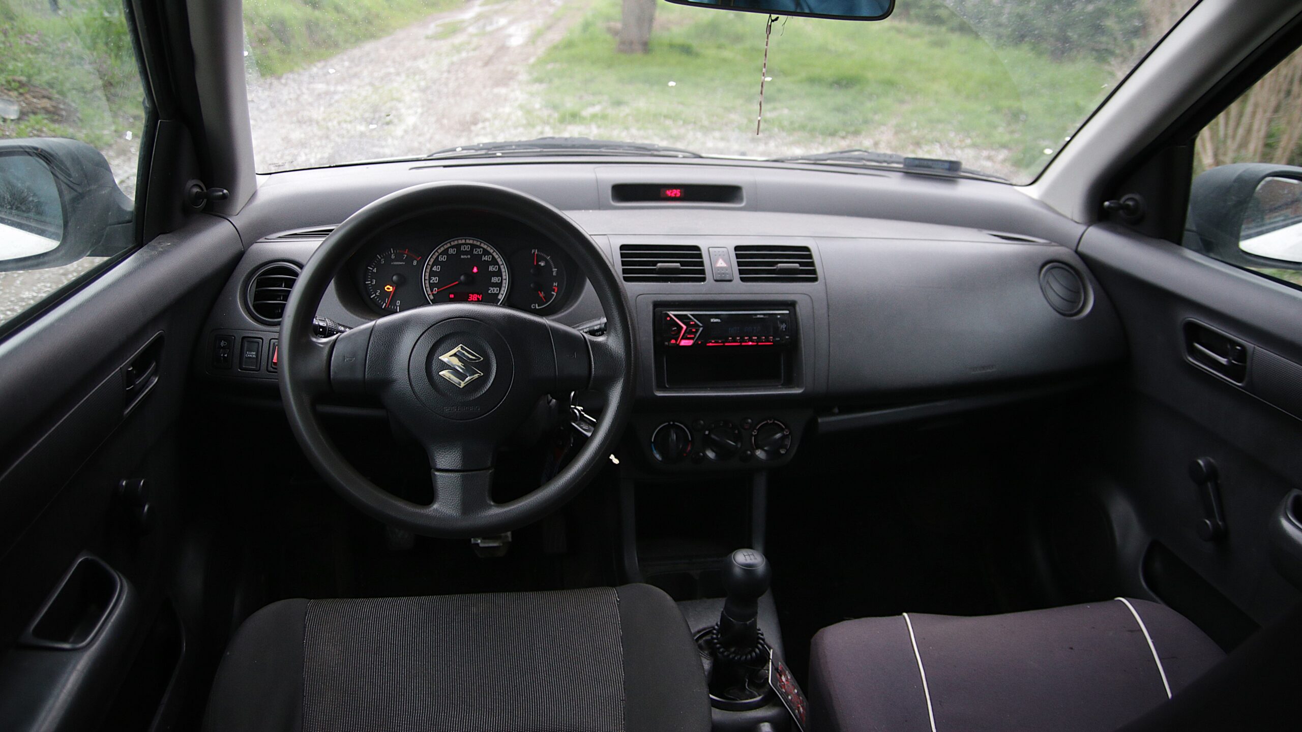 Ennyi pénzért bűntudat nélkül – és akár a szabályokat betartva is – lehet neki nyomni. A kisebb karosszéria, a feszesebb futómű, a hangosabb kipufogó és a forgósabb motor miatt alacsonyabb sebességnél is képes mosolyt csalni az ember arcára akár közúton, akár a Kakucson, de az aszfaltról letérve is meglepően kompetens. Kimondottan jót lehet például veretni vele a sárban, hiszen a csekély tömege miatt még egész necces helyeken is könnyedén átjuttatja a lendülete. Persze, az összkerekes hajtáslánccal erre a célra jobb lenne, valamint a 15 centis hasmagasság is csekély, de még 10-15 millióért is akadnak olyan új „crossoverek, amelyek helyett inkább ezt a Swiftet választanám az úttalan utakra. Ha másért nem, akkor azért, mert egy 350 ezres, egyébként is leharcolt küllemű autón nem érdekel egy két új karc, horzsolás vagy horpadás. Ám a legvagányabb az volt, amikor murvás, dimbes-dombos szakaszokon mentünk néhány kört. Akárcsak közúton: nem kell veszélyes sebességre gondolni, ez a Swift már akkor is megmosolyogtat, amikor a legcsúnyábban elnézett kanyarban is csak két-három elemet vertél volna össze.