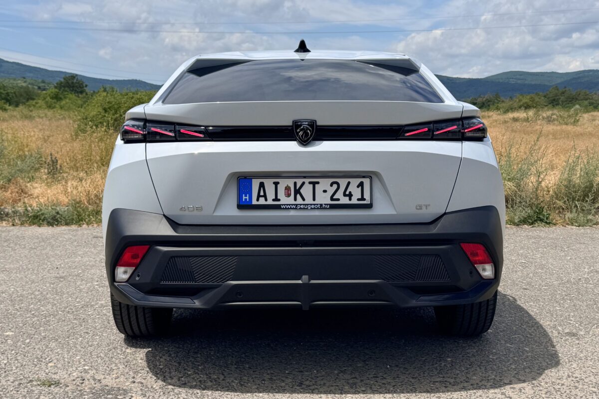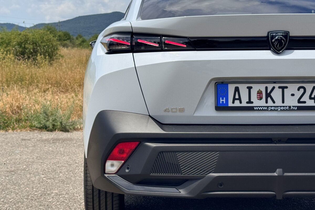 Kicsit idegenkedtem annak idején, amikor az első képeket megláttam a 408-asról. Nem tudtam hova tenni, de hát pont ez egyben a varázsa is, az első találkozások után gyorsan megkedveltem a formát. Keverednek benne a különböző járműkategóriák tulajdonságai. A leglátványosabb azonban az emelt hasmagassága, amitől még nem nevezném SUV-nak, de erősen hajaz ezekre a modellekre, viszont egy picit kupés a tetővonala, aztán mégis egy rövidfarú szedánban végződik. Mindezt megspékelve a sok-sok éles vonallal, illetve a tipikus oroszlánkarmos utalásokkal. Teljes mértékben egyedi autó, ami a kompakt 308 és a középkategóriás 508 között helyezkedik el félúton.