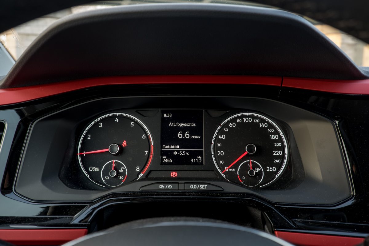 A Polo nagyon gazdagon felszerelhető, amiből mi most keveset láttunk. Hiszen a LED fényszórók mellett kategóriájában egyedüliként digitális műszeregység is rendelhető, de igaz ez a radaros távolságtartós tempomatra is. Vészfék asszisztens, holttérfigyelő, visszagurulás-gátló, tolatókamera is lehet a fedélzeten – a legelső mindenképp van. Kameránk viszont nem volt, csak radarunk, ami elég pontos és jól használható, az első és hátsó túlnyúlások rövidek, csupán széltében lehet váratlanul nagy a Polo parkolásnál.Raktere 355 literes, alatta lapul a Beats mélynyomója, de még pótkerék is, a műszerfal üvegfelületű érintőkijelzős fejegysége továbbra is remekül használható, pörgős, és stabil