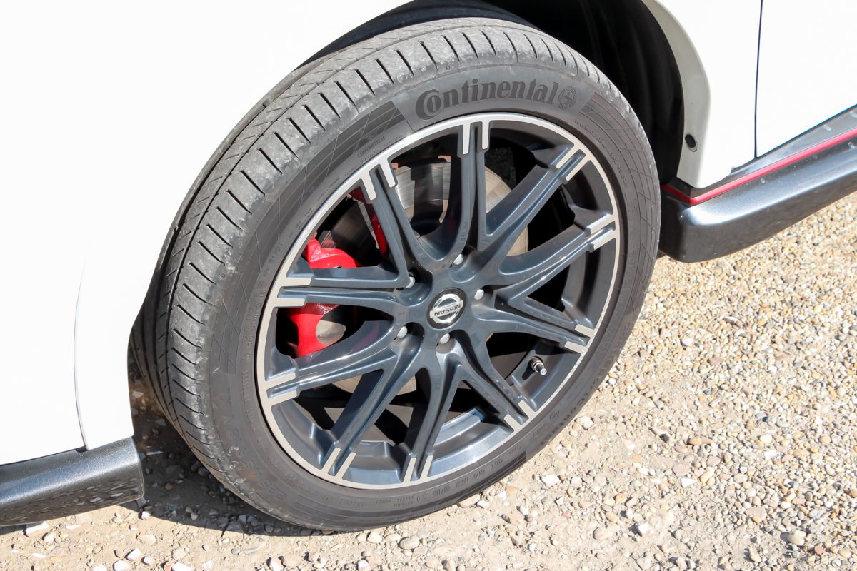 Mi az új a lemezek alatt? A korábbi Nismo változatot ért két fő kritika közül az egyik az volt, hogy a megszokott, 190 lóerős 1.6-os DIG-T motorhoz képest a Juke Nismo csak plusz tíz lóerőt nyert. Emellett a nem éppen sportos vezetéshez kitalált fokozatmentes CVT automataváltó volt az, ami miatt a Juke Nismót a legtöbben nem tudták hova rakni és inkább csak mint vicces furcsaság tudtak rá gondolni. Nos az RS-nél ilyen gond nincs, az összkerekes, CVT váltós változat 214 lóerős lett, ezzel gyorsabb lett: már 8,0 másodperc alatt van százon, de a 200 km/órás a végsebessége nem változott. Mindezt az átdolgozott motorvezérléssel és az új kipufogórendszerrel sikerült elérni. Hogy bírja a terhelést, átdolgozták a motor hajtókarját, és hogy a fékezéssel se legyen gond, hátul is hűtöttek lettek a féktárcsák.
