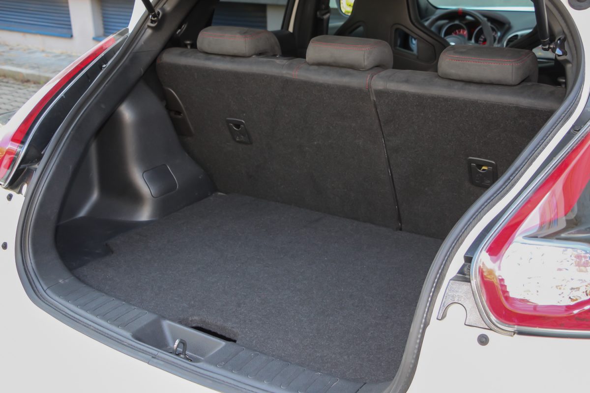 Az 1.6 DIG-T erejével sosem volt gond, a Nismo tuninggal meg aztán végképp semmi, még a fogyasztása is barátságos. A nem összkerekes Juke-oknak 354 literes, korrekt méretű a csomagtartója