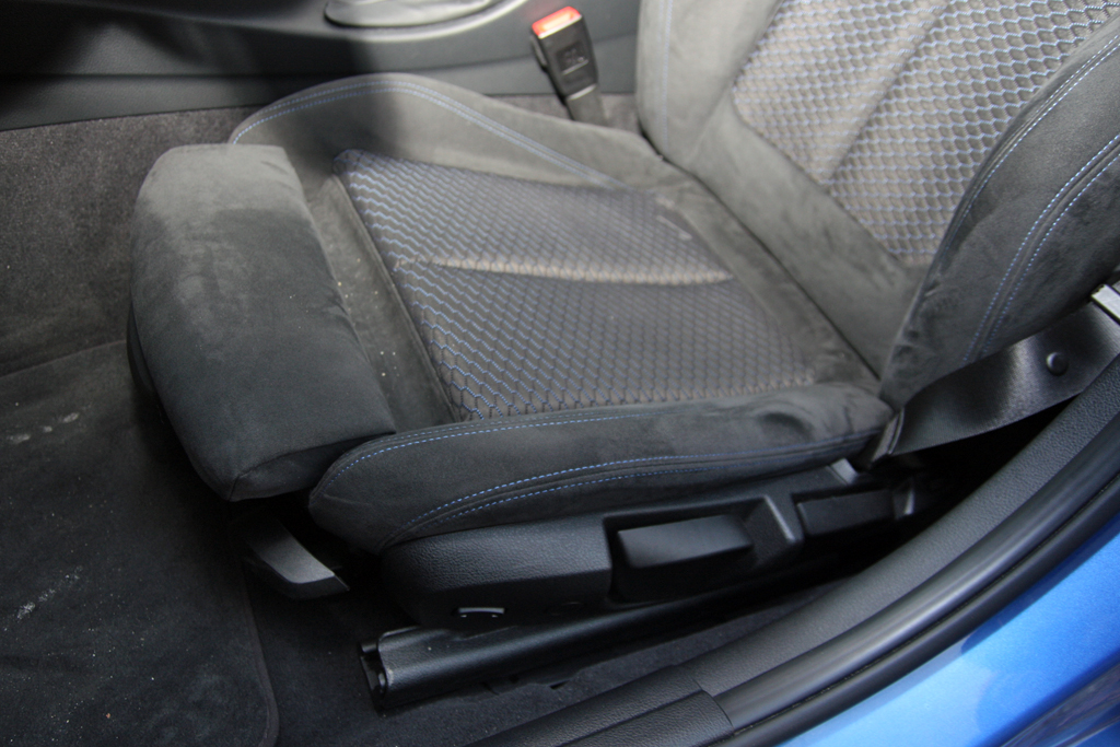 Tehát Touring. Nem 5-ös, csak olyan mintha, főleg szemből, az aktuális arculathoz igazodva. Elődjéhez képest tengelytávolsága durván, hossza 10 centit nőtt, ezzel együtt már-már lefelé lóg ki a középkategóriás átlagból. De nem szélességre, s mivel laposabb is a többségnél, igen nyúlánknak néz ki. És jól, nagyon jól. Szerintünk, és ami fontosabb, tapasztalataink szerint is, hiszen bármerre jártunk, forogtak utána a fejek. Nem valószínű, hogy kombisága-újdonsága, hanem szemcsapdás Estoril-kék fényezése és dögös sportcsomagja miatt. Az M-packet úgy is üt, hogy az importőr bölcsen „csupán” 17 colos alufelnikre pakoltatta a téligumikat. Egyébként 1,4 millióért 18-asokat ad, egyedi, komoly légbeömlős lökhárítót, küszöböt, Alcantara sportülést, M-logós sportkormányt és ugye a csodálatos Estoril-kék fényezést, is.