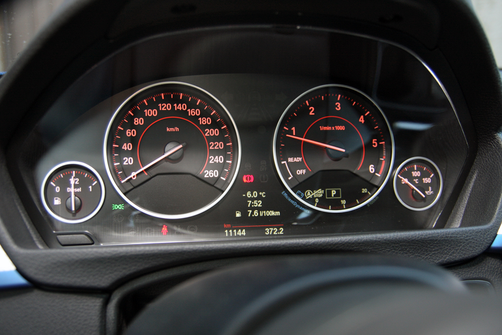 A 20d motor és a kormány mögül is kapcsolgatható 8 fokozatú automata sem újdonság - a négyhengeres dízelpaletta legizmosabbika 184 lóval és 380 Nm-rel fölényesen viszi a bő 1,5 tonnás kasztnit, 100-ra 7,6 mp alatt gyorsít, a végsebesség 220 km/h feletti. Megéri a 16d-hez képest több mint 1,3, de még a 18d-vel összevetve is közel 1 milliós felár? Egyfelől semmiképp, másfelől meg hát, mert egy ilyen kinézetű és ilyen presztízsű sportkombi nem lehet nem túlmotorizált... A baj az, hogy - nem csak, de főleg hidegen - alapjáraton és alacsony fordulaton zajos és kerregős ez a dízel, ami nem feltétlen méltó az autóhoz. Lassan is melegszik. A stop-start rendszer is csupán már melegen hajlandó automatikusan leállítani a motort (ez mondjuk élettartamilag nem biztos, hogy hátrány). A 6-os manuálisnál 800 ezerrel drágább ZF-váltó? Selymesen, észrevétlen munkálkodik, s tartja extrém alacsonyan a fordulatszámot - gazdaságos és tompító, fékezett habzású Eco Pro üzemmódban. Az élménykapcsolót Sportba, kiváltképp Sport Pluszba bökve aztán fokozottan gyorsan, hangyányit sportosan rántva gangol - le a kalappal. Amúgy a 3-ast hírnevéhez hűen használva a négyhengeres dízelorgánum sem annyira zavaró, de a benzinesek, elsősorban a 4-nél több hengeres benzinesek hangját persze képtelen visszaadni.