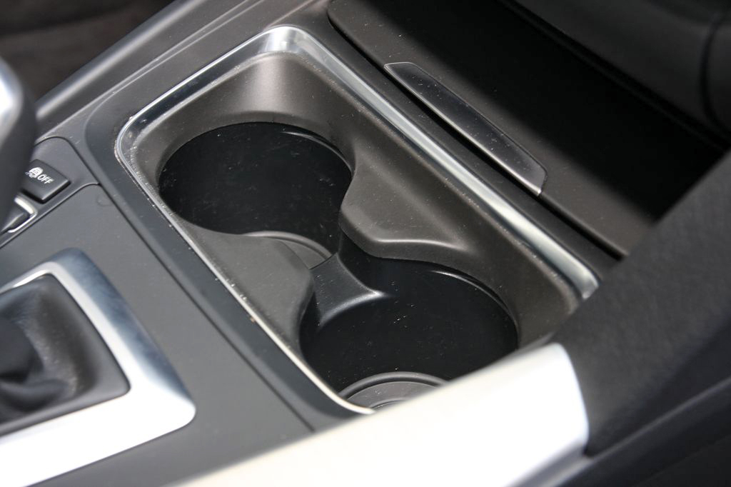 Ha elöl pohártartásra fognánk a váltó előtti teret, annak tálcája hely nélkül kallódik az utastérben; légbeömlő és nyitható pohártartó hátra is került