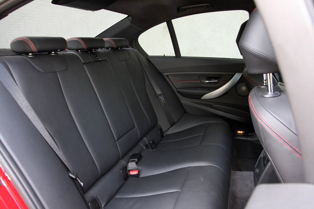 A karosszériára fölösleges sok szót fecsérelni a 320d tesztje után, nagy vonalakban elmondható, hogy az utastér a korábbihoz mérten érezhetően nőtt, főként a hátsó lábtér lett nagyobb, a változtatható laphosszúságú sportülések kevéssel komfortosabbak, mint a hagyományosak, de azért nem hozzák a Citroën DS3 Racing székeinek szintjét. A kidolgozás minőségi, ám fölösleges minőségérzetnek nyoma sincs. Az ajtók kissé nehezen záródnak, a csomagtéré az opciós kulcs nélküli nyitórendszerrel elvileg láblendítésre is nyílik - messze nem minden esetben, sötét árnyékban például szinte soha. Bár a csomagtér 480 literes űrméretével nem rossz, lapos és kissé nehezen pakolható, közben pedig fejünkre is vigyázni kell, ugyanis a csomagtér kiálló zárja kellemetlen meglepetést okozhat.
