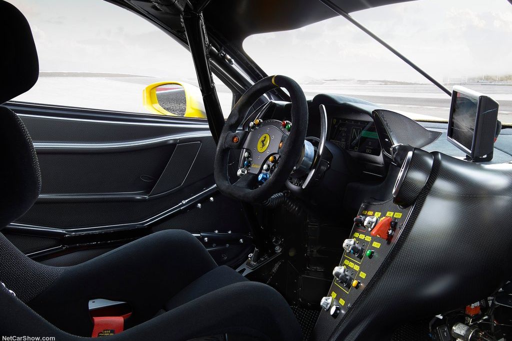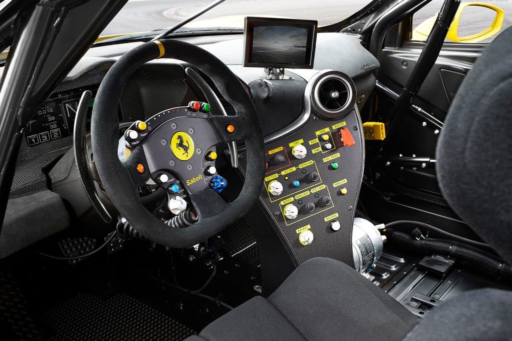 A beltér sem hasonlít már az utcai 488 GTB-re. A végtelenségig könnyített kabint bukóketrec védi