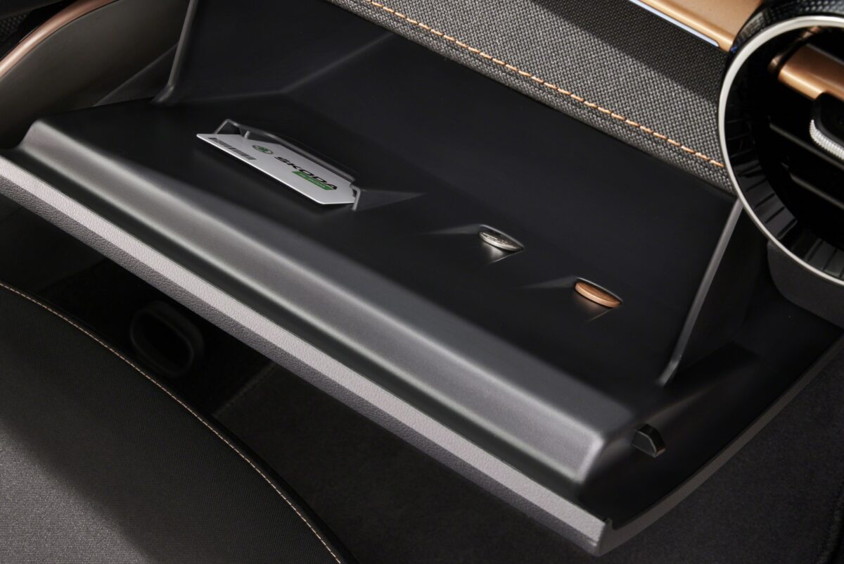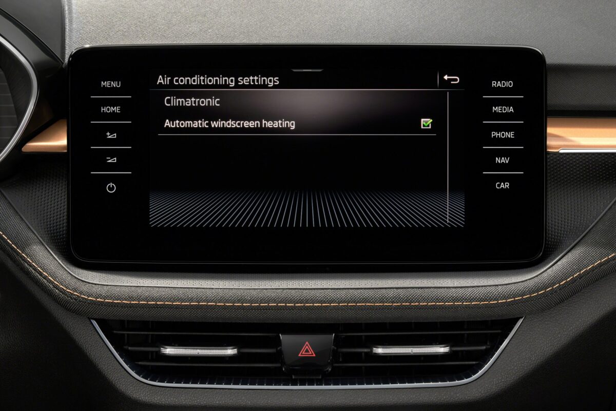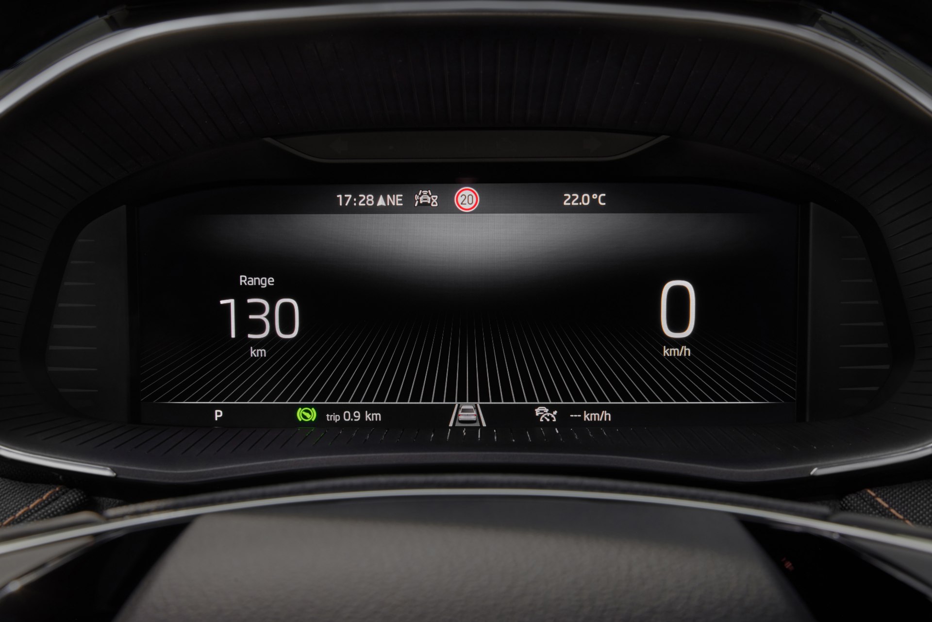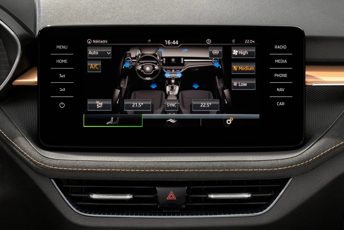 Enyaq iV-t idézi. Már az alapverzió is 6,5 colos központi érintőképernyőt kap, de van egy köztes, 8 colos is, vezeték nélküli Apple CarPlay/Android Auto és vezeték nélküli telefontöltés, fedélzeti wifi és 64 GB-os, SSD háttértár kedvenc zenéinknek egyaránt elérhető, ahogyan Laura, a Skoda 15 nyelven beszélő virtuális asszisztense is. Azt persze kicsit fájlalom, hogy telefontöltő ide is már csak USB-C csatlakozóval érkezik.