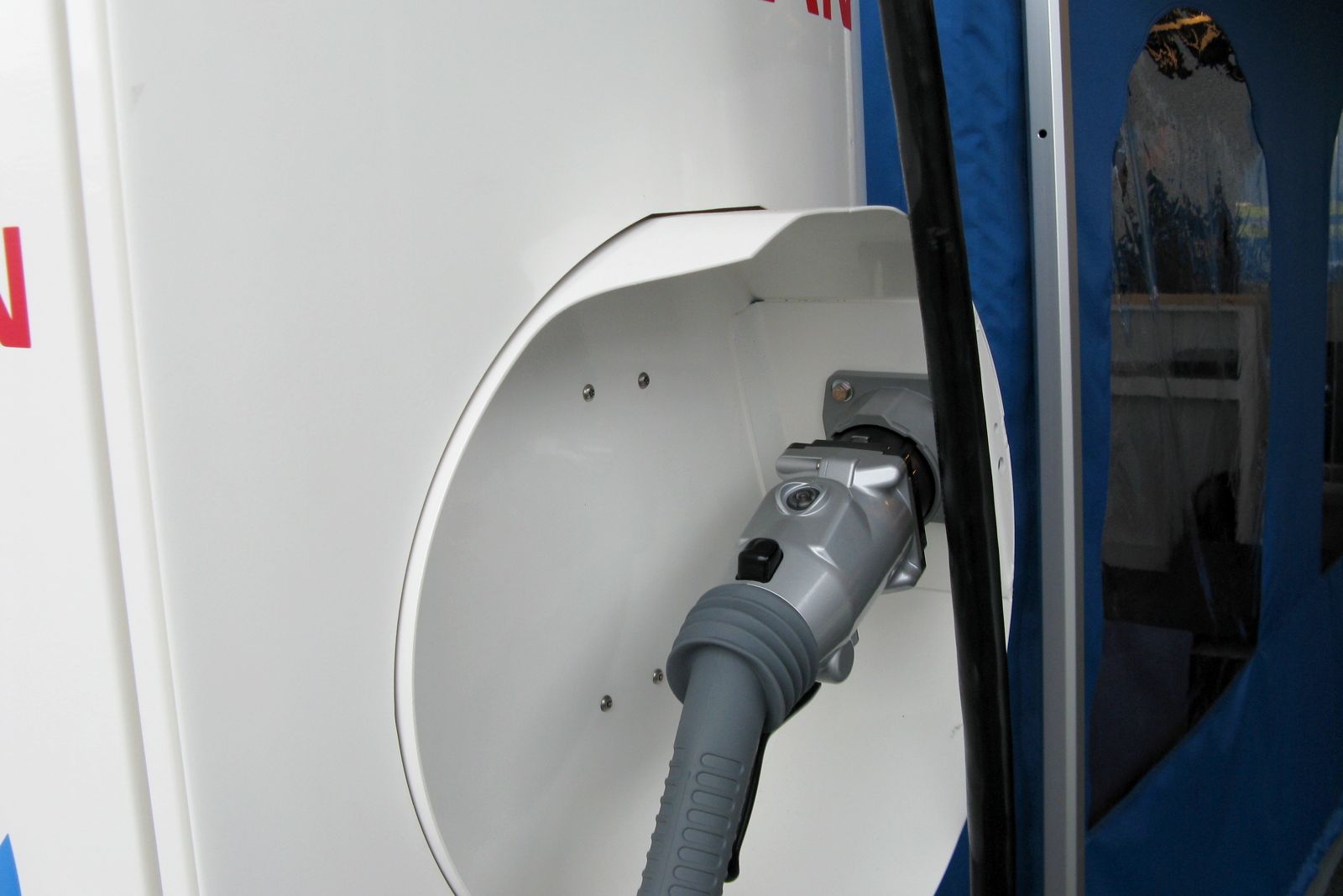 Gyors-töltéskor a "kútoszlop" saját kábelét, bárhol máshol az autóhoz mellékelt 6 méteres, 4 kilogramm tömegű vezetéket kell csatlakoztatni az első, "tápoltató-konnektorba"
