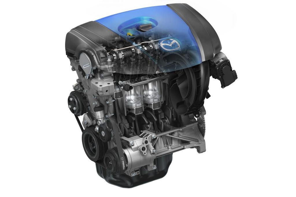 Számszerűbb adatokat tartogatnak az egyelőre 2,0 literes űrtartalommal, benzinesként és dízelként is megjelenő SkyActiv motorok. A közvetlen befecskendezésű benzines SkyActiv-G névre hallgat és különlegessége az extrém magas, még a Formula-1-ben használt benzinesekénél is magasabb, 14,0:1 kompresszió viszony, mellyel a Mazda szerint a létező legtökéletesebb, de még kopogásmentes égést érték el. A korábbi 2,0 literes benzineshez mérten 15 százalékkal növelt nyomaték 215-220 Newtonmétert sejtet, ugyanakkor fogyasztása is jelentősen apadt, szintén 15 százalékkal, de nem ám a mostani benzineshez, hanem a 2,2-es dízelhez mérten! Ez bizony 5 liter/100 kilométer alatti kombinált értéket jelent, ami valóban egyedülálló teljesítmény egy 2,0 literes benzinestől. Mindezt a teljes egészében könnyűfém blokk tömegének 10 százalékos, belső súrlódásainak 30 (!) százalékos apasztásával és változó szelepvezérléssel érték el a fejlesztők.