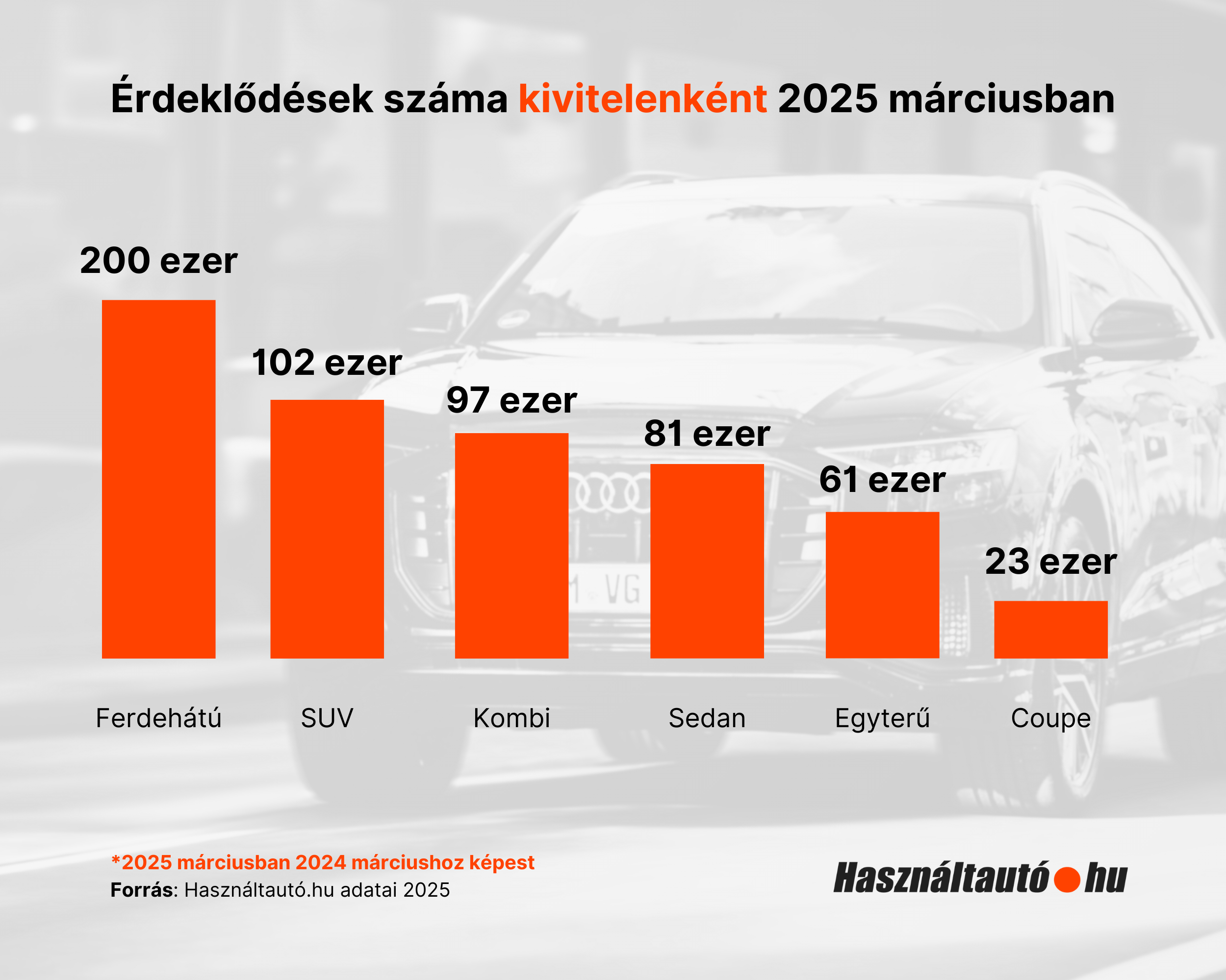 A Használtautó.hu legfrissebb adatai alapján márciusban a portálon 23,8%-kal nőtt az érdeklődők száma az előző évi adatokhoz viszonyítva. Az oldal szakértője a kimagasló adatok lehetséges okait és részleteit vizsgálta.