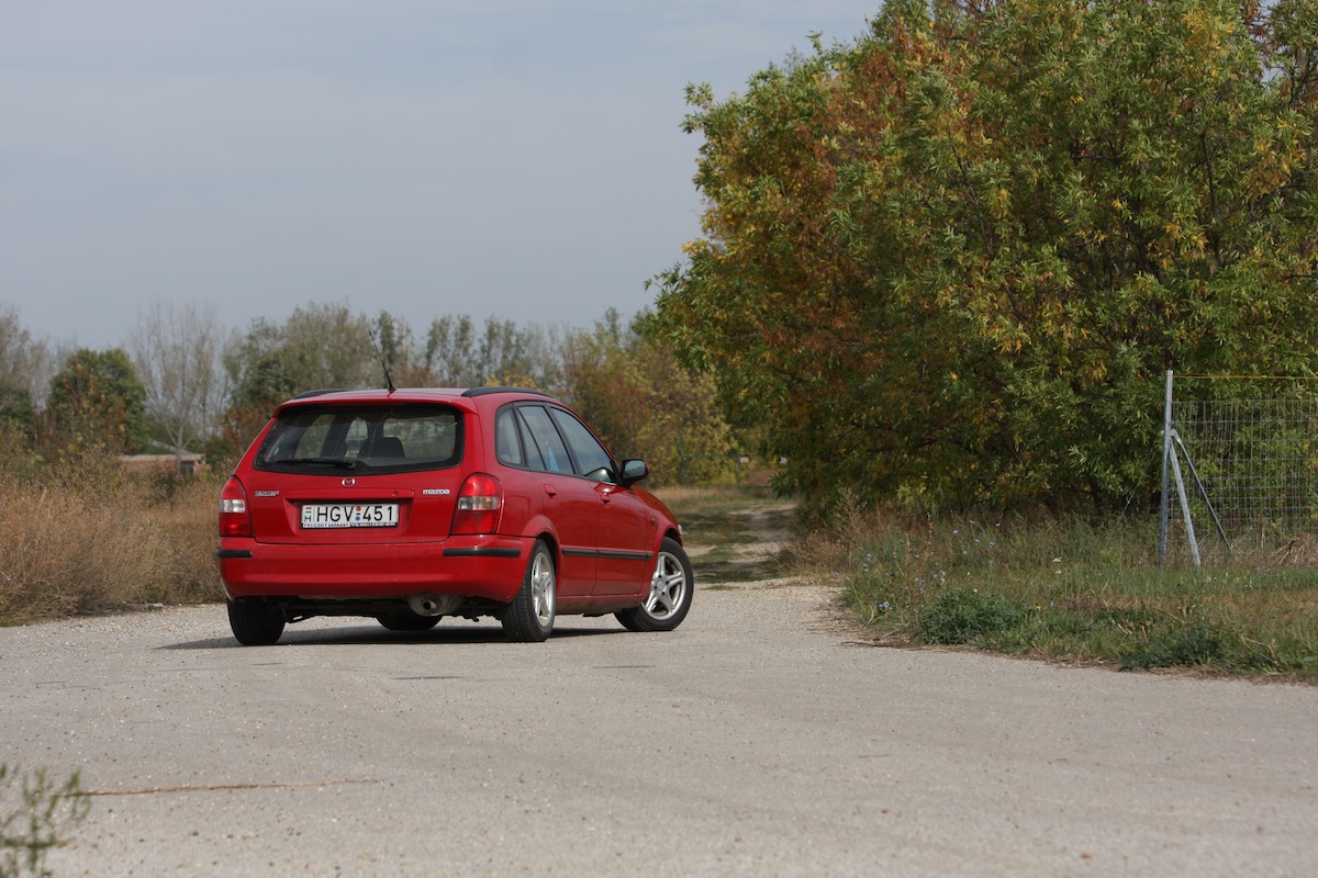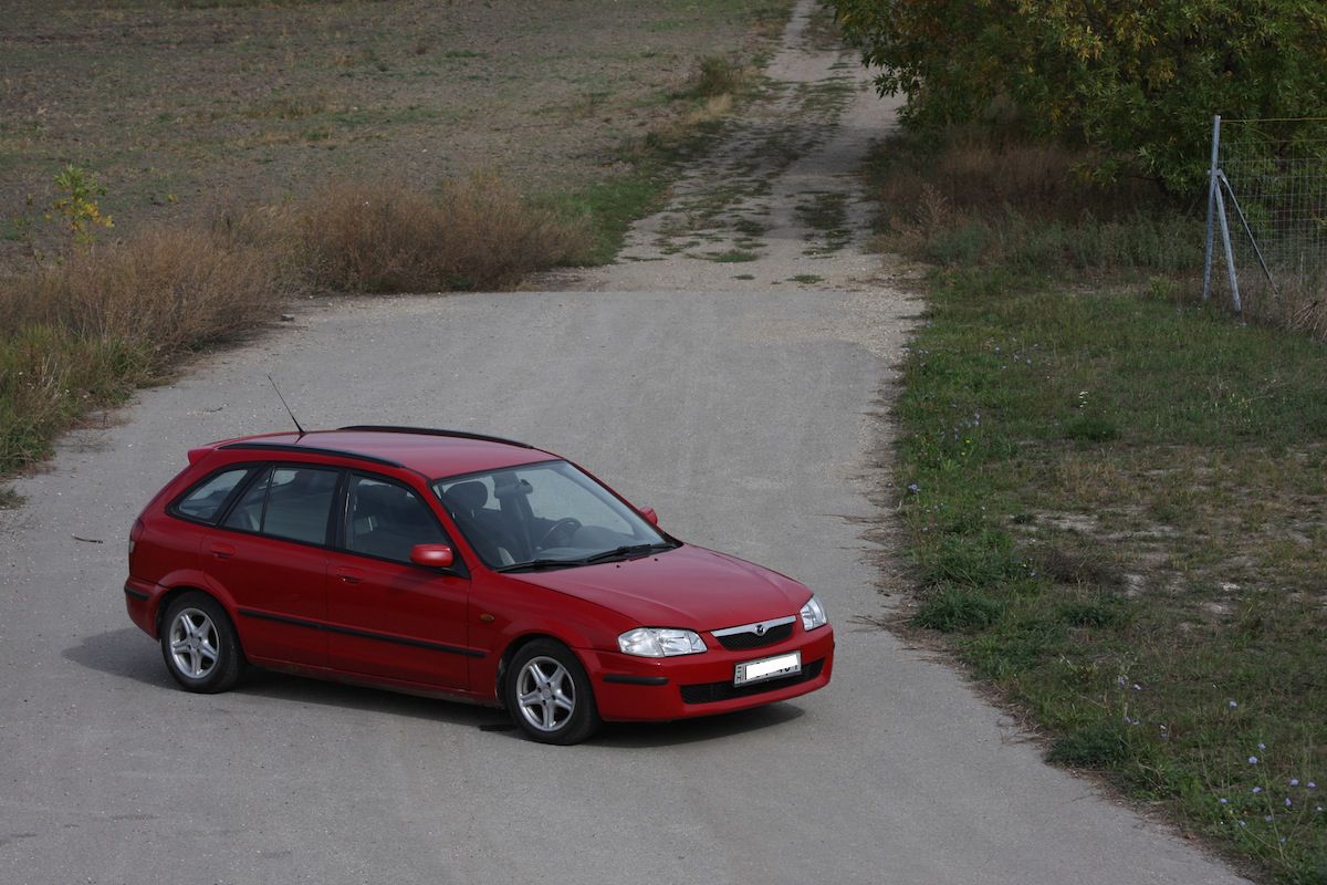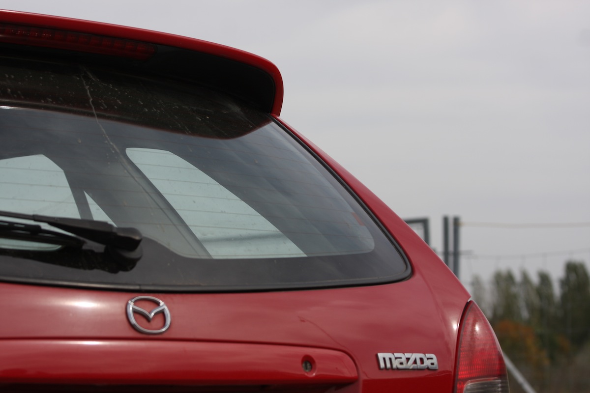 Cikkünk azzal kezdődött, hogy micsoda szerencséje van a Mazdának azzal, hogy még fiatalon második tulajhoz került. Eredetileg ugyanis anyuautó volt, de családon belül hamar srácautóvá vedlett, ekkor élte meg legszörnyebb éveit. Durva ültetőszettet kapott széles gumikkal, spoilerek sokasága került karosszériája különböző pontjaira, fehér lámpaburáit belülről feketével fújták át, és minden bizonnyal egyéb gazságok is történtek volna, de elfogyhatott az ízléstelenségekre költhető keret, mert eladósorba került. Mostani tulajdonosa egy vidéki Peugeot szalonból vásárolta meg 1 450 000 forintért 2004-ben.