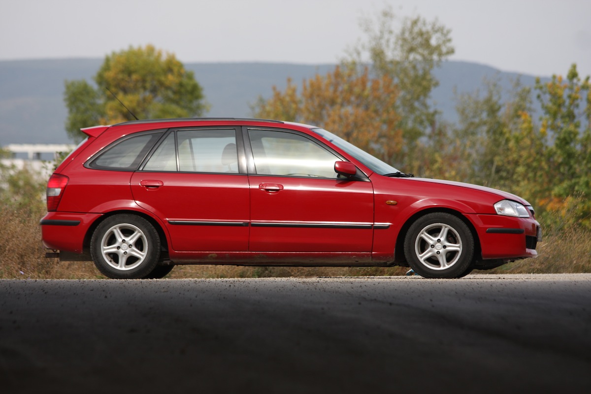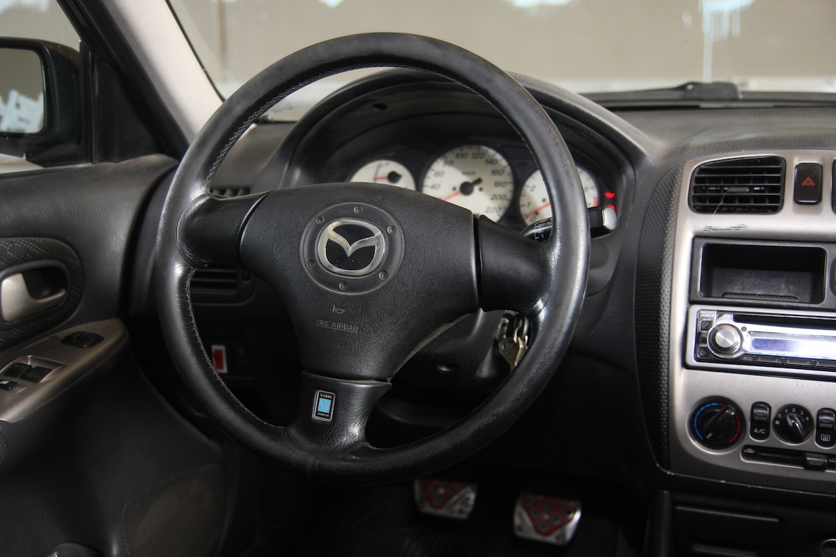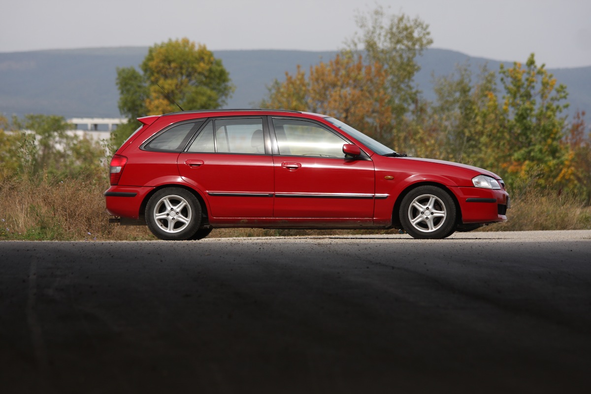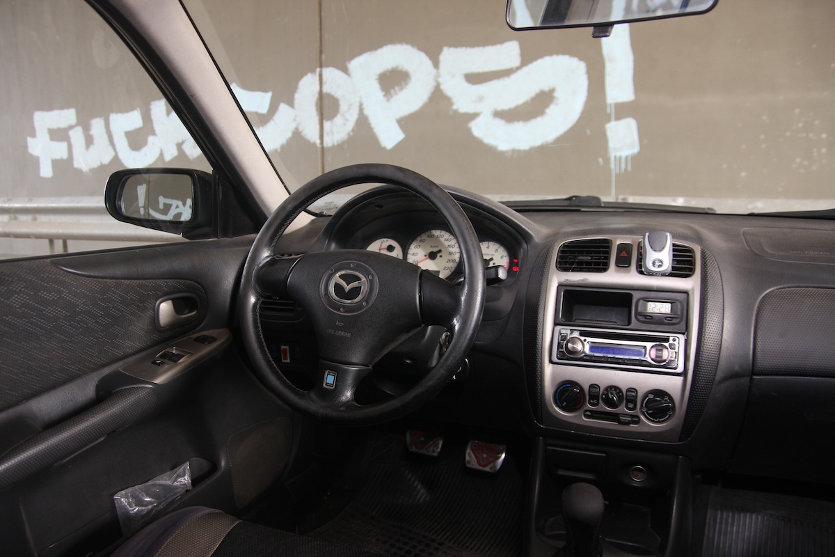 Cikkünk azzal kezdődött, hogy micsoda szerencséje van a Mazdának azzal, hogy még fiatalon második tulajhoz került. Eredetileg ugyanis anyuautó volt, de családon belül hamar srácautóvá vedlett, ekkor élte meg legszörnyebb éveit. Durva ültetőszettet kapott széles gumikkal, spoilerek sokasága került karosszériája különböző pontjaira, fehér lámpaburáit belülről feketével fújták át, és minden bizonnyal egyéb gazságok is történtek volna, de elfogyhatott az ízléstelenségekre költhető keret, mert eladósorba került. Mostani tulajdonosa egy vidéki Peugeot szalonból vásárolta meg 1 450 000 forintért 2004-ben.
