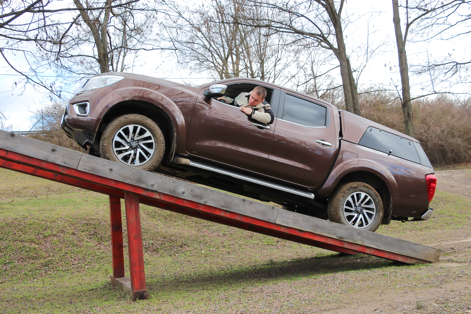 Persze csakis mint a kicsit mogorva, de azért jófej nagybácsi, mivel az NP300 Navara olyan messze van még a crossoverektől, mint az én tavaszi fogyókúrám az olimpiai felkészüléstől. A korábbi Navara, főleg a 3,0 literes V6-os motorjával és automataváltóval már erősen kifelé táncolt a teherautó műfajból. Most ilyen motor már nincs, de erőhiány sincs, és egy csomó minden átalakult. Finomodott a beltér kidolgozása, ami személyautós szemüvegen át nézve a kompaktok között sem lenne helytálló, de itt, a pickupok között maga a minőségi élmezőny. Maradt a szent létraváz, azaz a nem önhordó felépítés és az ehhez leginkább passzoló hátsó merevtengely is. Az újdonság a több segédkarral megvezetett hátsó futómű, amiben laprugó-kötegek helyett már spirálrugó pár dolgozik.