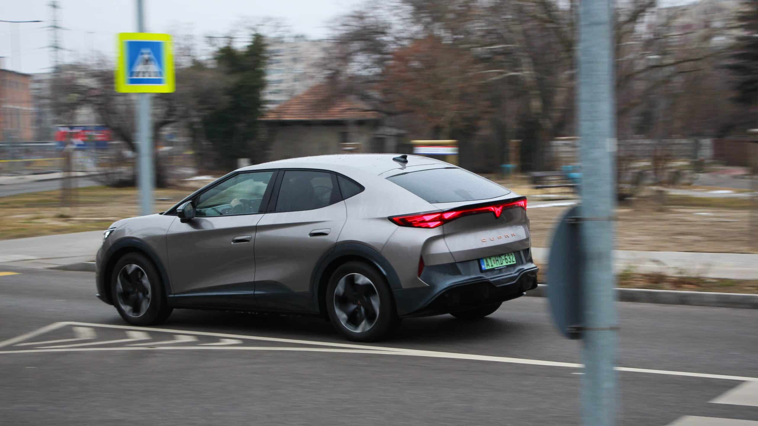 Menetkomfort szempontjából urbánus környezetben kifejezetten kellemes élmény a Cupra SUV-kupéjával közlekedni. Az alapáras sport futómű a 19 colos felnikkel is szépen elnyeli az úthibákat, emellett energiatakarékos üzemmódban is bárkit ott lehet vele hagyni a lámpánál. A Cupra módot aktiválva már egészen más kép rajzolódott ki. Egyrészt a Tavascan meglepően kiszámíthatatlanul viselkedik nagyobb tempónál, teljesen random, hogy túl- vagy épp alul kormányzott lesz-e a tempós kanyarokban. Ezért örömteli, hogy a menetstabilizáló nagyon szépen egyenesben tartja az autót.