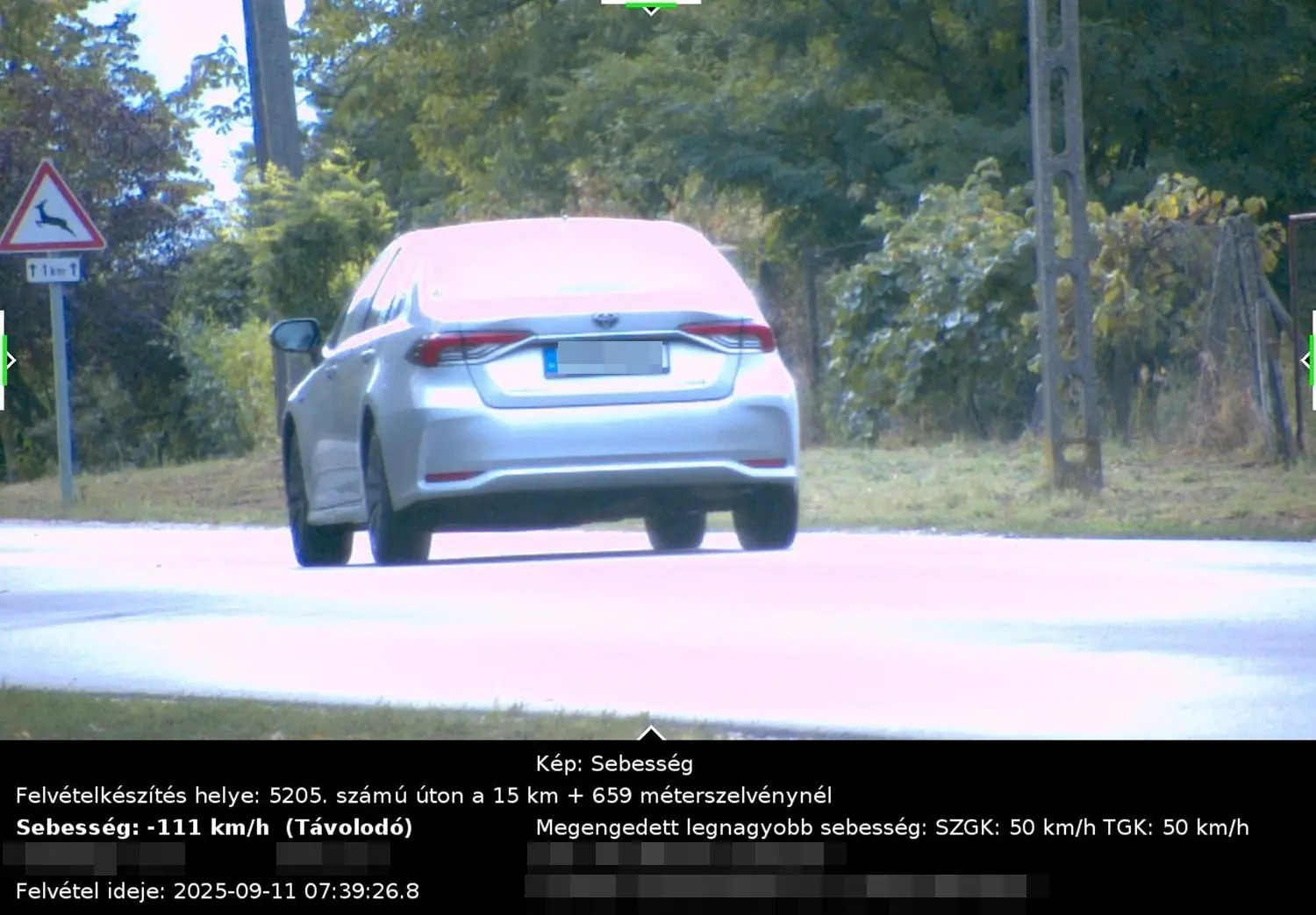 Már többször is előfordult, hogy egy figyelmetlen, száguldozó sofőrt oda-vissza bemértek. Az viszont ritkább, hogy ugyanazt az autót, két egymást követő reggel, ugyanott kapják gyorshajtáson. Pontosan ez történt a fotókon szereplő Toyota vezetőjével. Szeptember 10-én reggel fél 8 után pár perccel 120 km/órával húzott el a mérőműszer előtt, míg másnap ugyancsak ekkortájt 111 km/órával. Mindezzel a legfőbb probléma, hogy az 5205. számú út szóban forgó szakaszán 50-es korlátozás van érvényben. Ennek megfelelően a két kihágásért összesen 522 ezer forintos bírságot szabtak ki a rendőrség tájékoztatása szerint. A hatóság kiemelte az eset kapcsán, ha még a helyszínen megállítják a száguldozót, 14 előéleti pontot "vésnek" a jogosítványába. Vagyis veszélyesen közel került volna az eltiltáshoz, mivel 18 pont elérése után automatikusan ugrik a vezetői engedély.