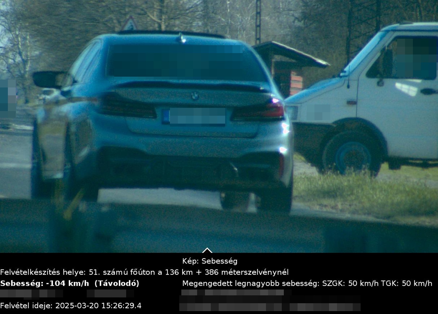 Ugyanekkora bírságra számíthat az a két autós is, akik ugyancsak 50-es táblánál 97 km/órával és 104 km/órával haladtak el a traffipax előtt - derült ki a rendőrség közleményéből.