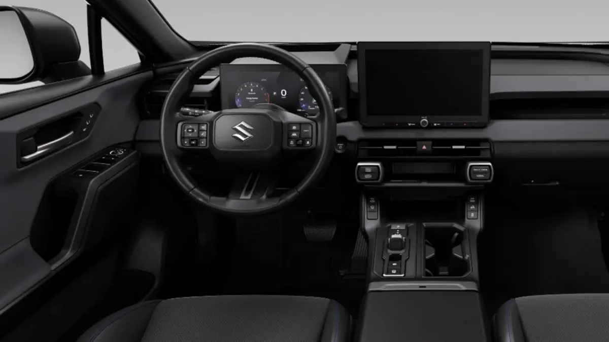 Az utastérben sincsenek nagy meglepetések. A kormányon található Suzuki embléma letakarásával gyakorlatilag az új RAV4 műszerfala köszön vissza, amelyen 12,3 colos digitális műszeregységet és 12,9 colos multimédiás érintőképernyőt helyeztek el. Ha valakinek pedig még ez sem elég, akkor a HUD is rendelkezésre áll.