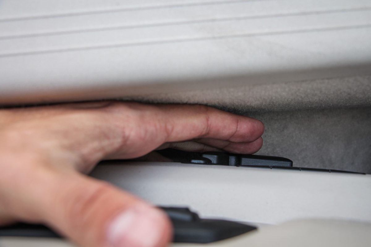 Hosszában tágas, nagyon mélyre kell ülni a kőkemény, de finom bőrrel vont sportülésekbe, állításuk már nem egyszerű a magas küszöb miatt, épp befér egy vékony kézfej