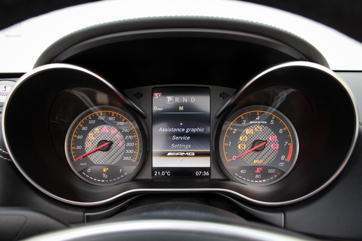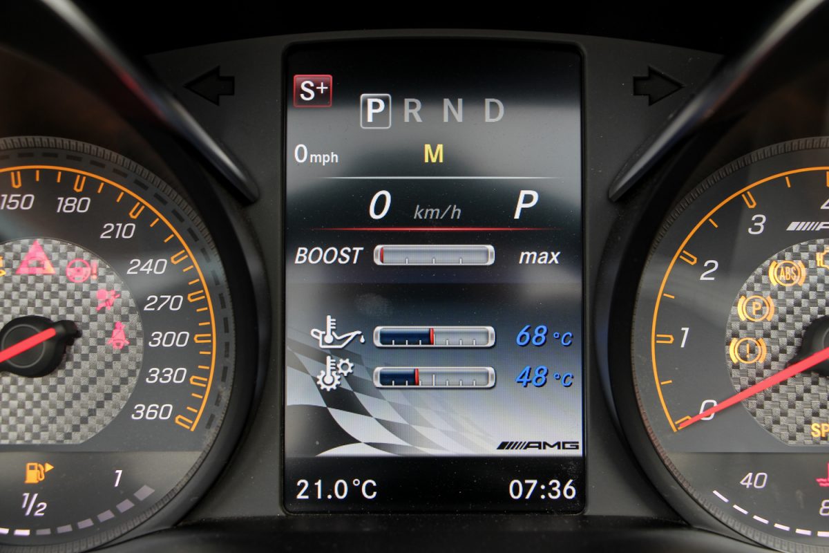 Érezd! Akkor érezni igazán, mi történik, mikor gyorsan megyünk, hirtelen értelmet nyer minden, és tűpontossággal tudjuk megmondani, hány centire mentünk el épp az útpadkától. Csodálatos, ahogy fordul, gázelvételre csöppet megtorpan kanyar előtt, de csak épp annyira, hogy az orra beljebb kerüljön a kanyaríven, majd gázra finoman kezdi tolni a fenekét a kanyarból kifelé és bekapcsolt kipörgésgátlóval mindvégig tökéletesen irányítható marad. Ha kilőjük, akkor viszont valódi fegyver lesz belőle, a legkisebb gázra elteszi a hátulját, de apró gázzal szinte egyhelyben meg lehet vele fordulni. A vadászgép effektusra a 880 ezer forintos selyemfényű szürke fényezés is rájátszik, bent viszont ha eltekintünk a kőkemény AMG ülésektől és az Alcantara bevonatú sportkormánytól, minden olyan, mint egy normál Merciben; tiszta luxus. Mondjuk, a multimédia is ugyanaz a túlgondolt, széteső animációkat játszó vezetés közbeni használatra alkalmatlan Comand szoftver.