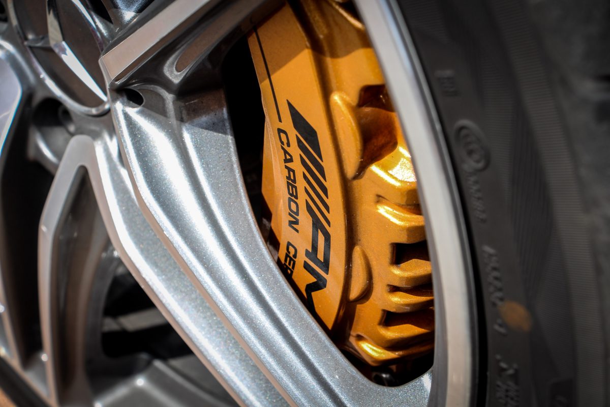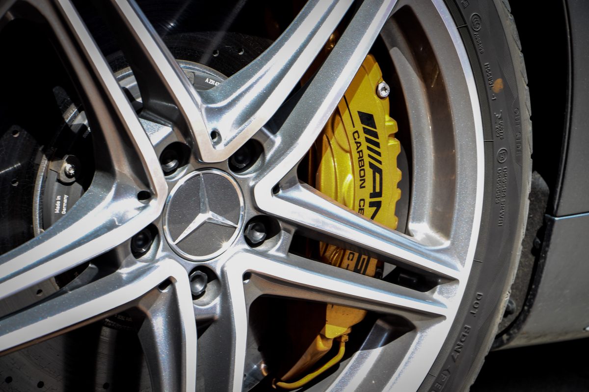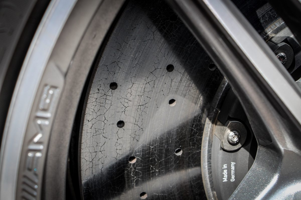 A feláras karbon-kerámia féktárcsák forszírozott igénybevételnél sem melegednek el, de jó gumik is kellenek a biztos megálláshoz, a Yokohama Advanoknál lehettek volna jobbak is rajta