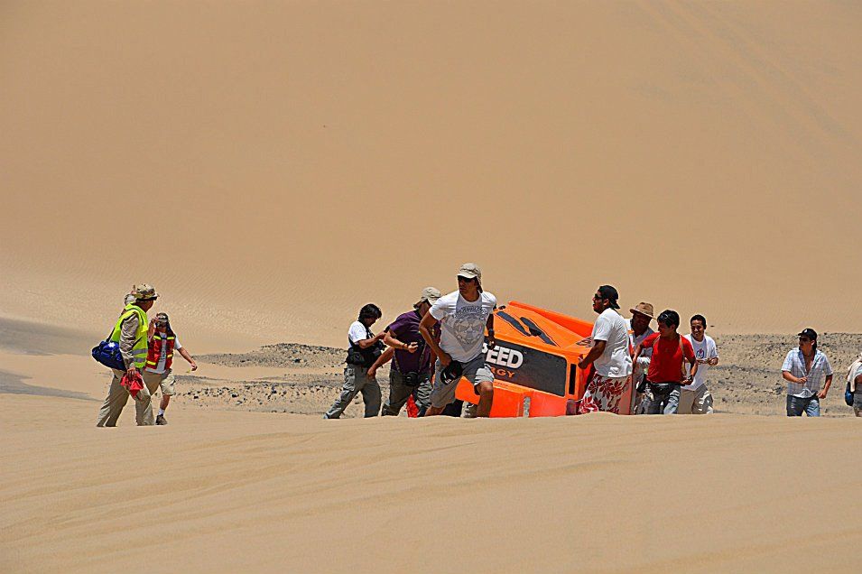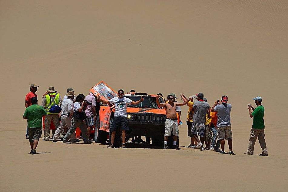 Előbb a katari polihisztor (N csoportos ralivilágbajnok, WRC-induló, Dakar-győztes, sportlövő olimpikon) alatt lerobbant a H3-as - a jó Nasser nyilatkozta is, hogy ezzel neki elege volt a Hummerből, majd Gordont kizárták, mondván szabálytalan a guminyomás-állító rendszere. Amit régóta használ. S amit tavaly szabályosnak találtak a felügyelők... Gordon ekkor 5 perc hátrányban volt csak Peterhanseltől. A minisek lecsalózták, ő lekislányozta őket, s a döntést megfellebbezve folytatta a versenyt, méghozzá ámokfutással.