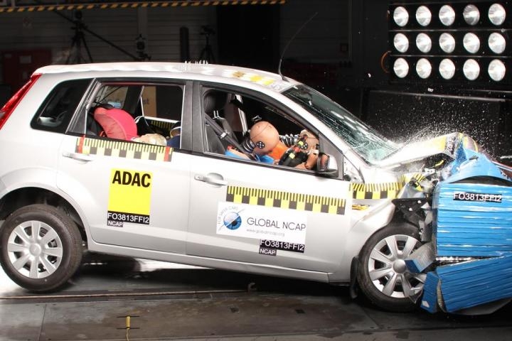 Légzsákok nélkül az ENSZ-szabvány szerinti teszten egyedül az előző generációs Ford Fiestát jelentő Ford Figo ment át sikeresen