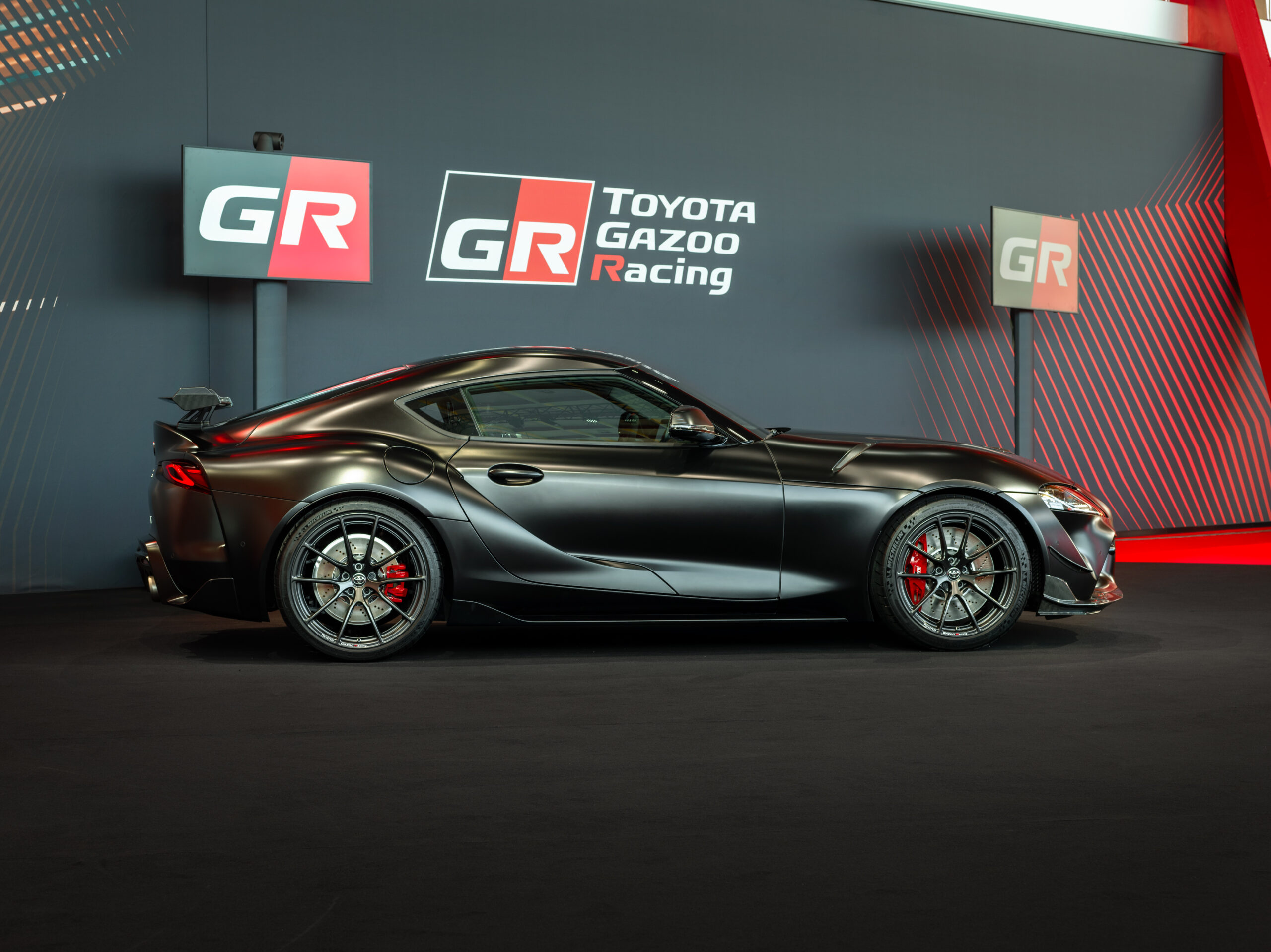 A GR sarokban tereprali gép, felújított Celica ralimasina, egy aerodinamikailag optimalizált GR Yaris és a búcsúzó Supra várta a nagyérdeműt. Ezek közül a Supra érdemli most a legtöbb szót, ugyanis a kiállított darab egy A90 Final Edition volt, ami lényegében egy GT4-es versenyautó utcára. Ennek megfelelően karbon ülésekkel, bukócsövezéssel, manuális sebességváltóval felszerelve. Kívül pedig a karbon kiegészítők és a hátsó szárny árulkodik az autó különlegességéről, amelynek erejét is feltornázták 441 lóerőre (340-ről). Továbbá a nyomatékcsúcsa is 571 Nm-re nőtt a kerek 500-ról, végsebessége pedig már 270 km/h. Jár még hozzá az állítható KW lengéscsillapító szett és a 19 colos felnik, mögöttük a Brembo perforált fékjei.