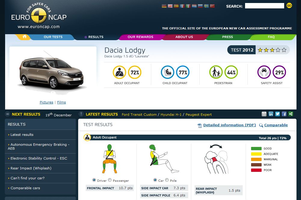 Dacia Lodgy bezzeg csak 3 csillagra volt jó.