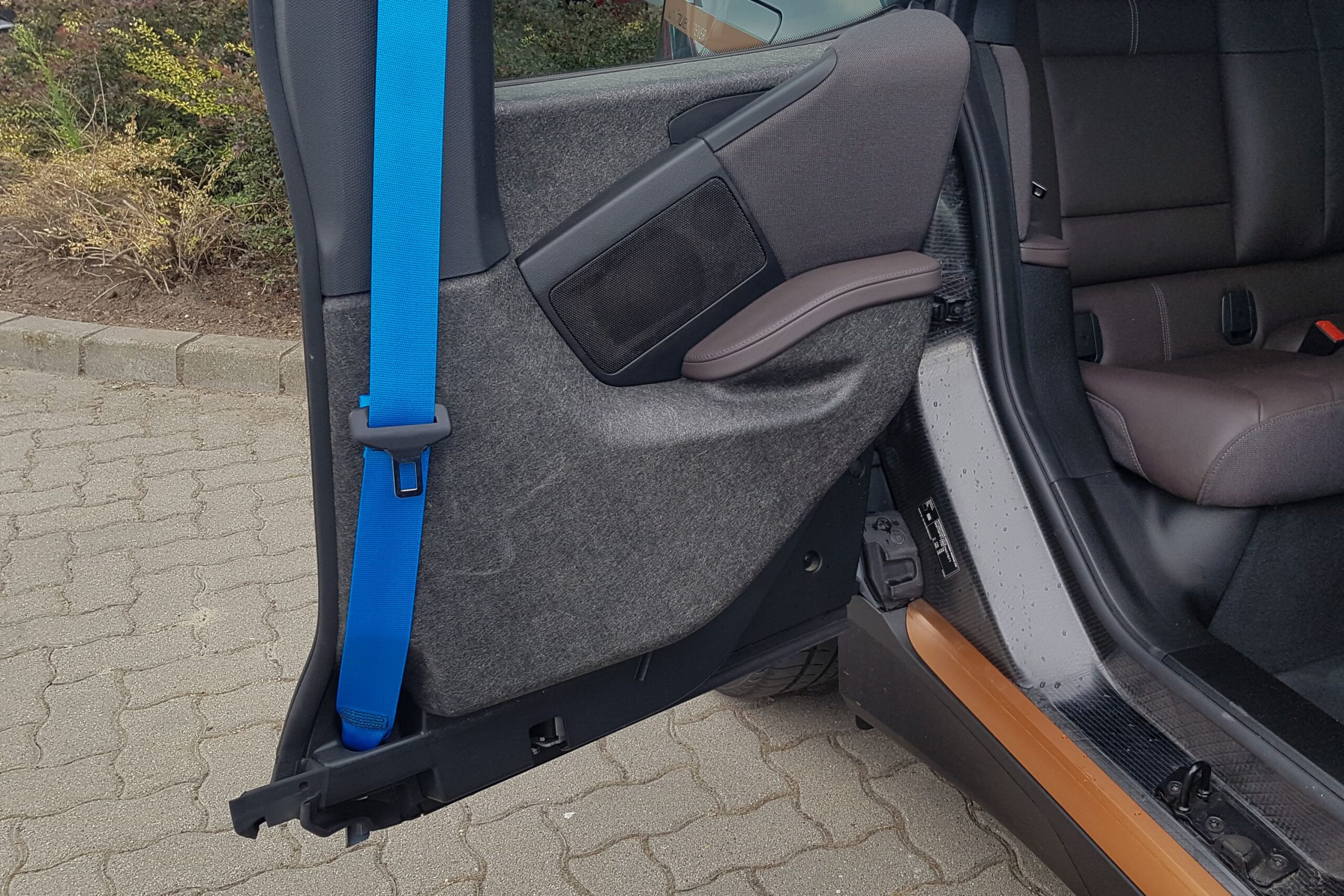 De most már nyugdíjba küldték, amikor ezeket a sorokat írom, már nem is rendelhető. A befejezés azonban ugyanolyan stílusosra sikerült, mint a típus egész pályafutása. A tesztpéldány ugyanis egy i3s Unique Forever modell, amiből csupán 2000 darabot gyártottak. Ezt a különféle kiegészítők teszik egyedivé, ám ahogy fentebb említettem, az autó egész koncepciója különleges. Első pillantásra a laikusok valószínűleg nem is gondolják, hogy a szupersportautók, sőt, ha kicsit messzebbre megyek, akkor a "nyitott-kerekes" versenyautók világából ered az a megoldás, amellyel az i3 épül. Csakhogy a BMW nagy darabszámban alkalmazza a megoldást. Az utasok ugyanis egy szénszálas műanyagból készült "cellában" foglalnak helyet. Ez tetten érhető például a küszöbökön, ahol szem előtt hagyták a szépen lakkozott karbonelemeket. Ugyanakkor ez egy nagyon drága megoldás, ami persze visszaköszönt az i3 vételárán is. A szénszálas műanyagok kisütése pedig energiaigényes feladat, ám a bajorok arra is ügyeltek, hogy nagyrészt megújuló, vagy visszaforgatott energiát használjanak ehhez.