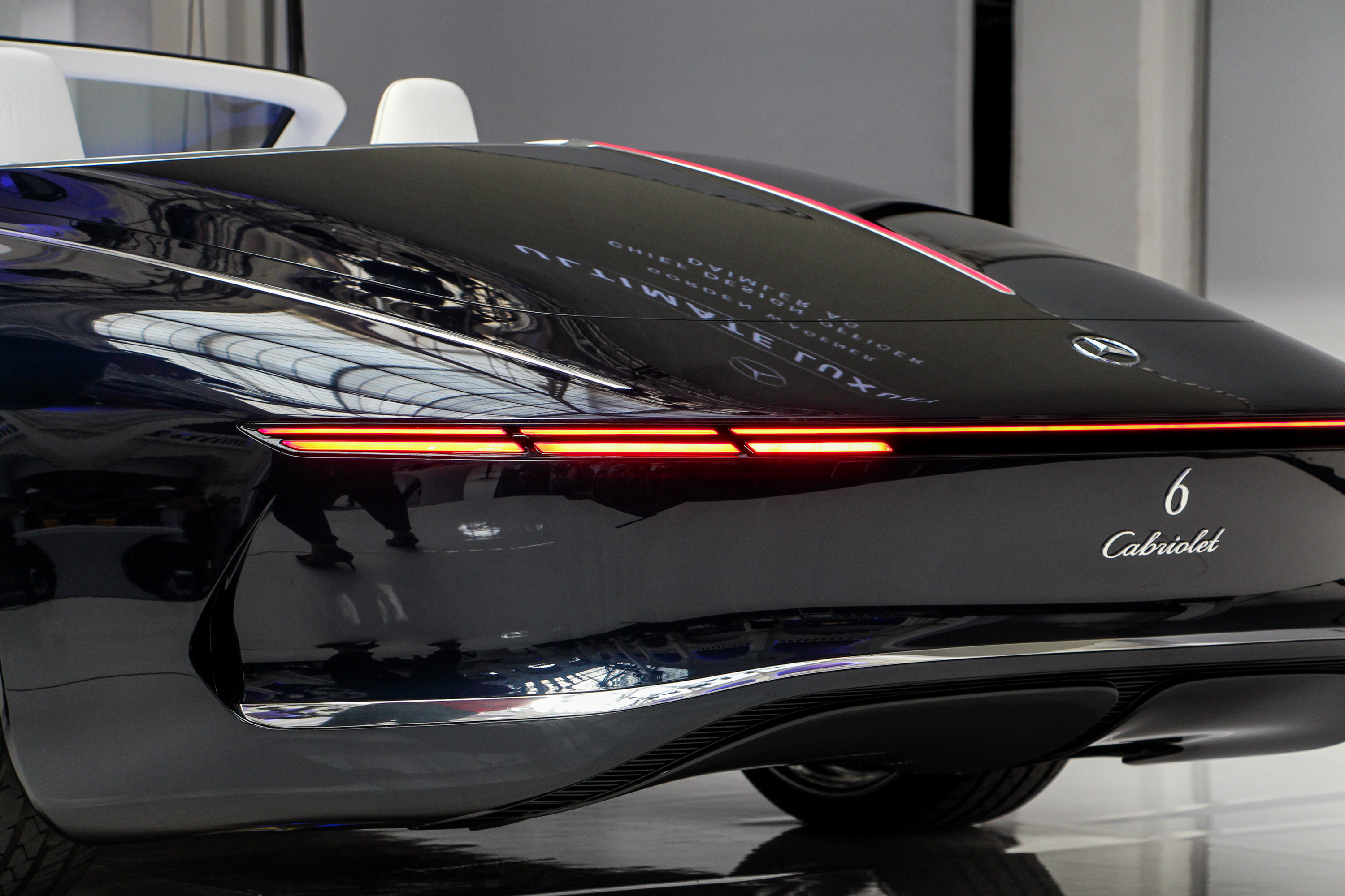 A Maybach 6 Cabriolet már jóval autószerűbb, mint a bordó kupé, de legalább annyira letaglózó a hatméteres kabriót élőben látni. Olyan, mint egy kész autó, ennek már van beltere, nem is akármilyen, valamint hajtáslánca is, legalábbis elviekben. Ugyan a gyári videóban gurulni is látjuk, egyelőre ez csak tanulmány, de az SLS AMG-ből átültetett 750 lóerős teljesen elektromos hajtáslánc tökéletesen passzolna hozzá, a 4 másodperces 100-as sprint pedig szinte nem is fontos, ezzel az autóval lágyan andalogni lenne jó. A részletek csodásak, a kidolgozás nem kevésbé, ám ebben a formában még ne nagyon várjuk. A részletekre kell figyelni, hiszen azok megjelenhetnek a következő Mercedeseken, mint például az egyetlen vonással húzott enyhén hajló övvonal és a vékony fényszórók.