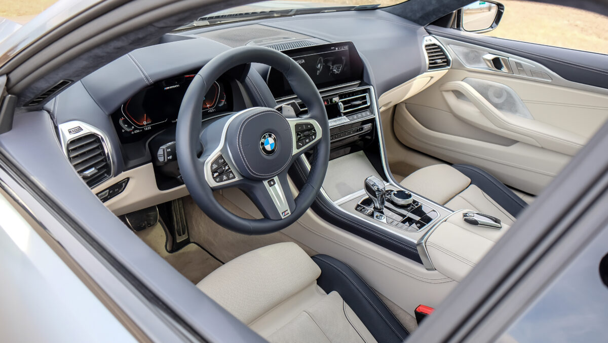 A színvilág az első szériás 8-as Gran Coupé sajátja, a kékes szürke bőrből ráadásul még a kormány is kapott.