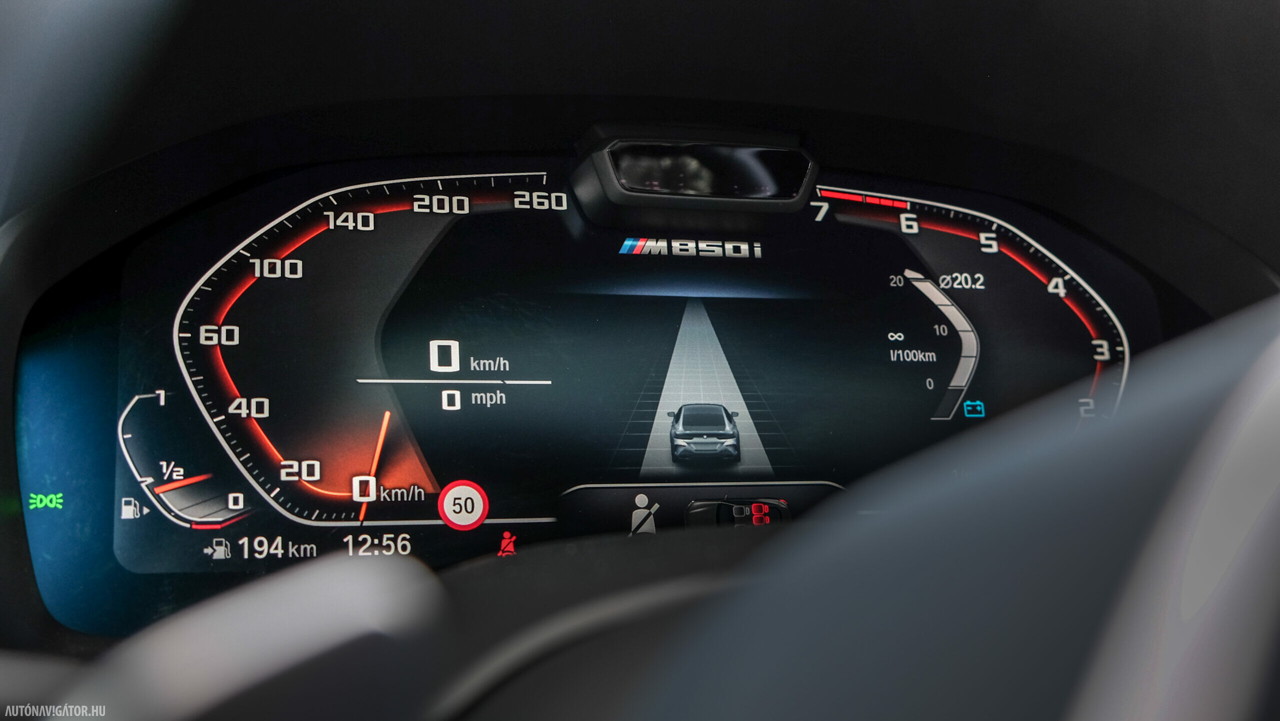 Az M850i-vel is lehet táncolni, ha nagyon szeretnénk, de ebben a modellben annyira nem kívánja a sofőr. Legalábbis általában, mert a precíz kormányzás, a kiváló összeszerelés és a nagyon merev karosszéria, valamint a tökéletes üléspozíció azért meghozza a kedvet időről időre. Olyankor a 8-as GC hibátlan, csúszásmentes úttartással és tűpontos irányíthatósággal jutalmazza a pilótát. Tökéletes a vezetési élmény, szinte csodával határos, hogy a több mint 5 méteres és alaphangon kéttonnás autó minden egyes mozdulatát a gerincünkben érezzük, mint egy rendes sportautóban. Zavarbaejtően ügyesen táncol a jó sportkocsi és a luxuslimuzin meghatározás között, bár, megkockáztatom, hogy mindkettőnek tökéletes. Mert vezethetőségben még a nyálkás utakon sem tudott hibázni, rugózásban feszes, de nem rázza ki az ember lelkét, kényelmes, jól ül benne mindenki, és a hangja is egy csoda. Ehhez hozzáadva, hogy a sofőr tökéletesen a végtagjai meghosszabbításának érezheti, egy ekkora autónál minimum tiszteletre, ha nem csodálatra méltó.