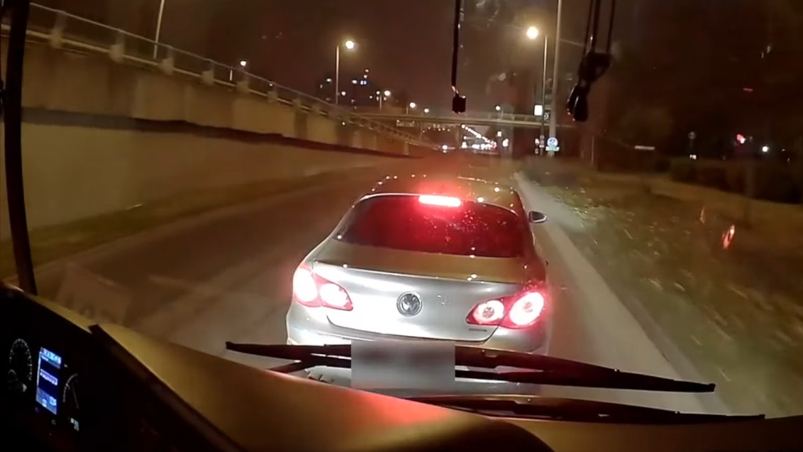 Egy VW Passat CC sofőrje büntetőfékezett egy metrópótló busz előtt