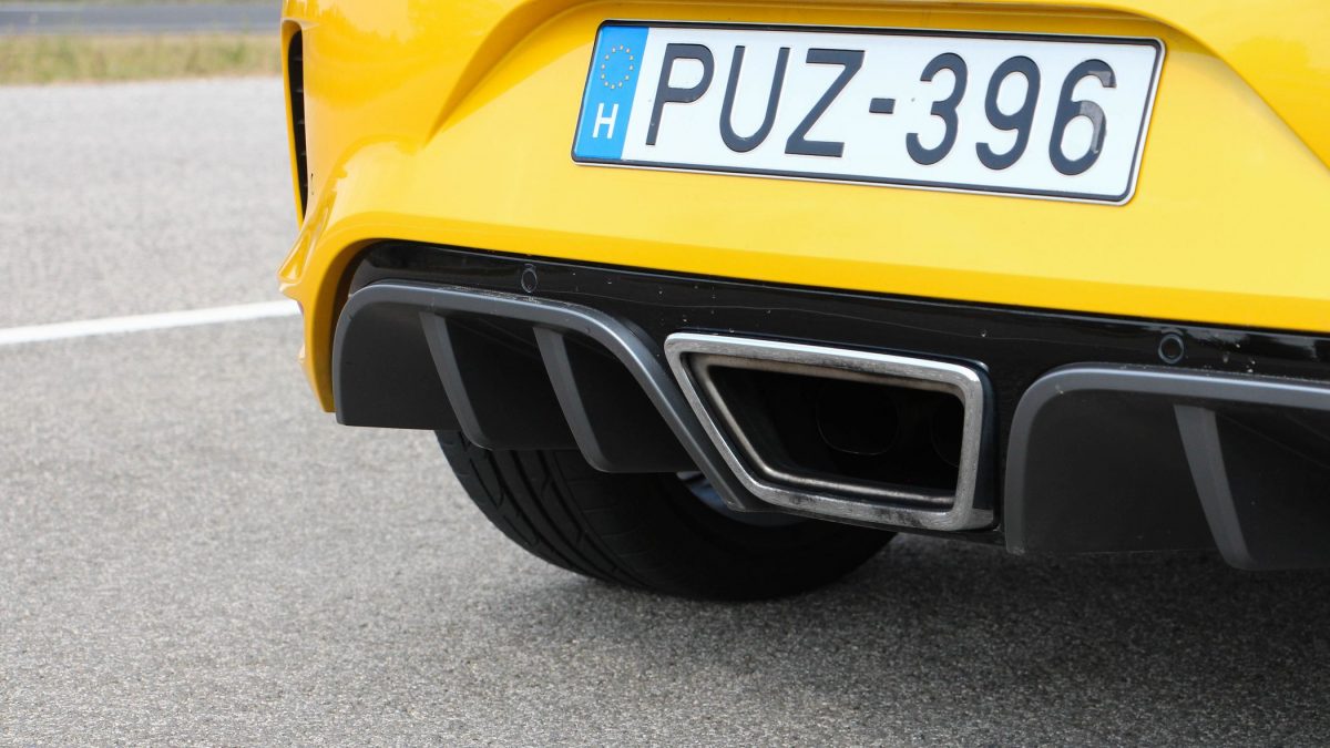 Bár nem olyan feltűnően zajos és durrogó, mint például a Hyundai i30N esetében. Viszont, amiben minden kompakt hot hatchnél többet nyújt, az az összkerék-kormányzás! Elsőre nagyon furcsa, hiszen a far kitörésének érzetét kelti, már azelőtt, hogy valóban elkezdené tolni a fenekét. Leginkább Race üzemmódban lehet ez ijesztő, ahol egészen 100 km/h tempóig az első kerekekkel ellentétes irányba fordulnak a hátsók. Ugyanakkor egészen hamar hozzá lehet igazítani a vezetési stílust, és akkor már a kanyarokba jóval nagyobb sebességet vihető be. Zseniális megoldás, egyedül a Cup csomaggal járó mechanikus sperr diffi hiányzik mellé, amelyért további 450 000 forintot kell kifizetni.Óriási segítség a gyors kanyarvételhez a hátsókerék-kormányzás