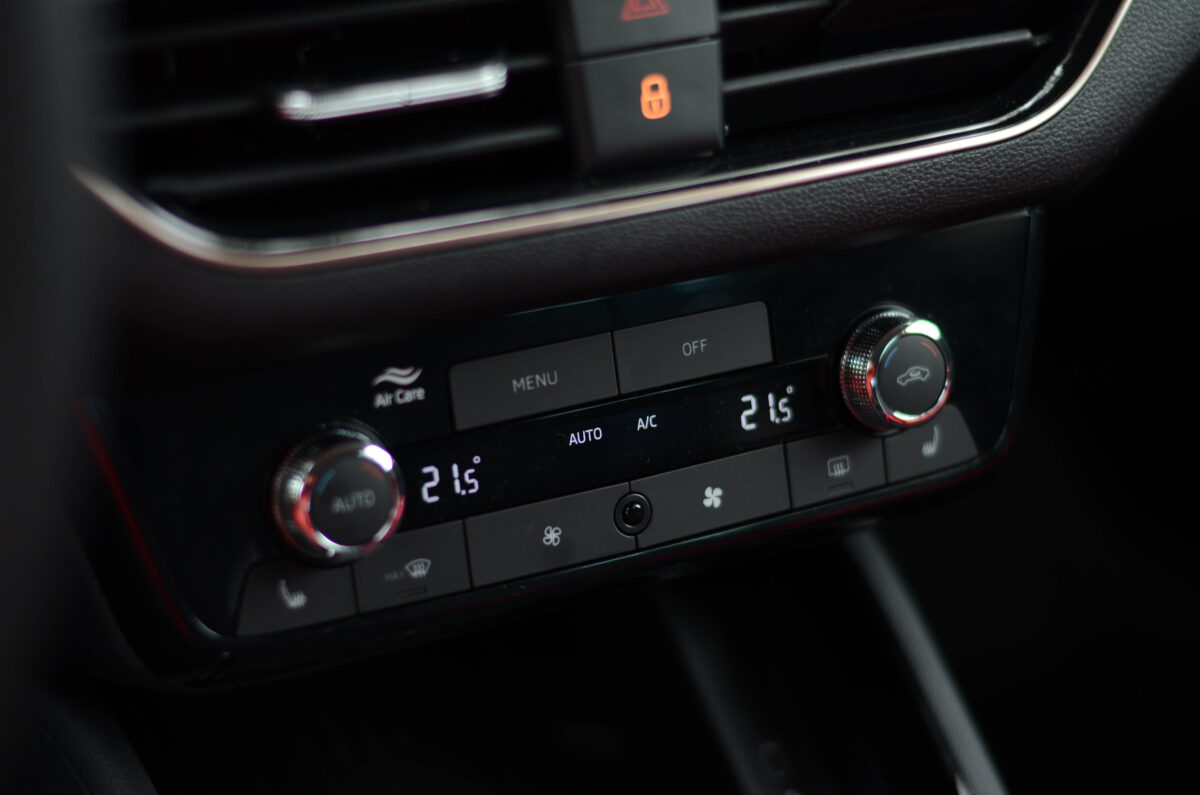 A klímavezérlő hagyományosnak álcázza magát, ám akadnak funkciók, amelyeket kizárólag a képernyőről lehet vezérelni
