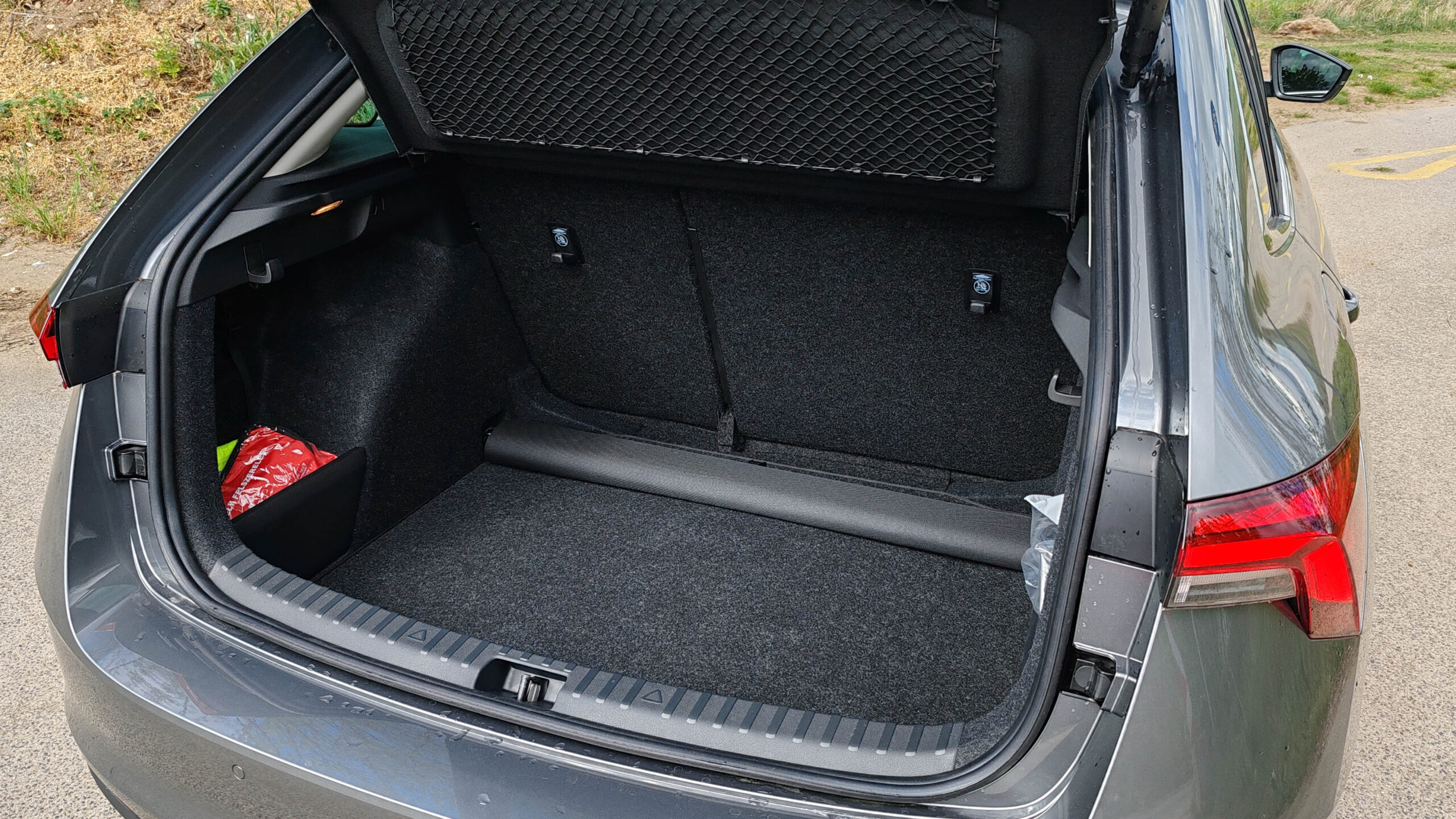 Ahol egyértelművé válik, hogy a Scala valamelyest egy kényszermegoldás az Octavia és a Fabia között, az a csomagtartó. A méretei természetesen bőségesek, ám a formája egyáltalán nem emlékeztet a kompakt kategóriában ismert vetélytársak puttonyára. Egy viszonylag rövid, keskeny és magas raktér fogad, emiatt a hétköznapokban teljesen meg fog felelni, inkább a nagy tárgyak szállításánál jelenthet problémát, hogy ez az autó egy kisebb platformra épül. Ezt azzal próbálták ellensúlyozni a csehek, hogy teleszórták mindenféle extrával a kampóktól elkezdve a csomagrögzítő hálóig, ezek mindenképp pirospontot érdemelnek.