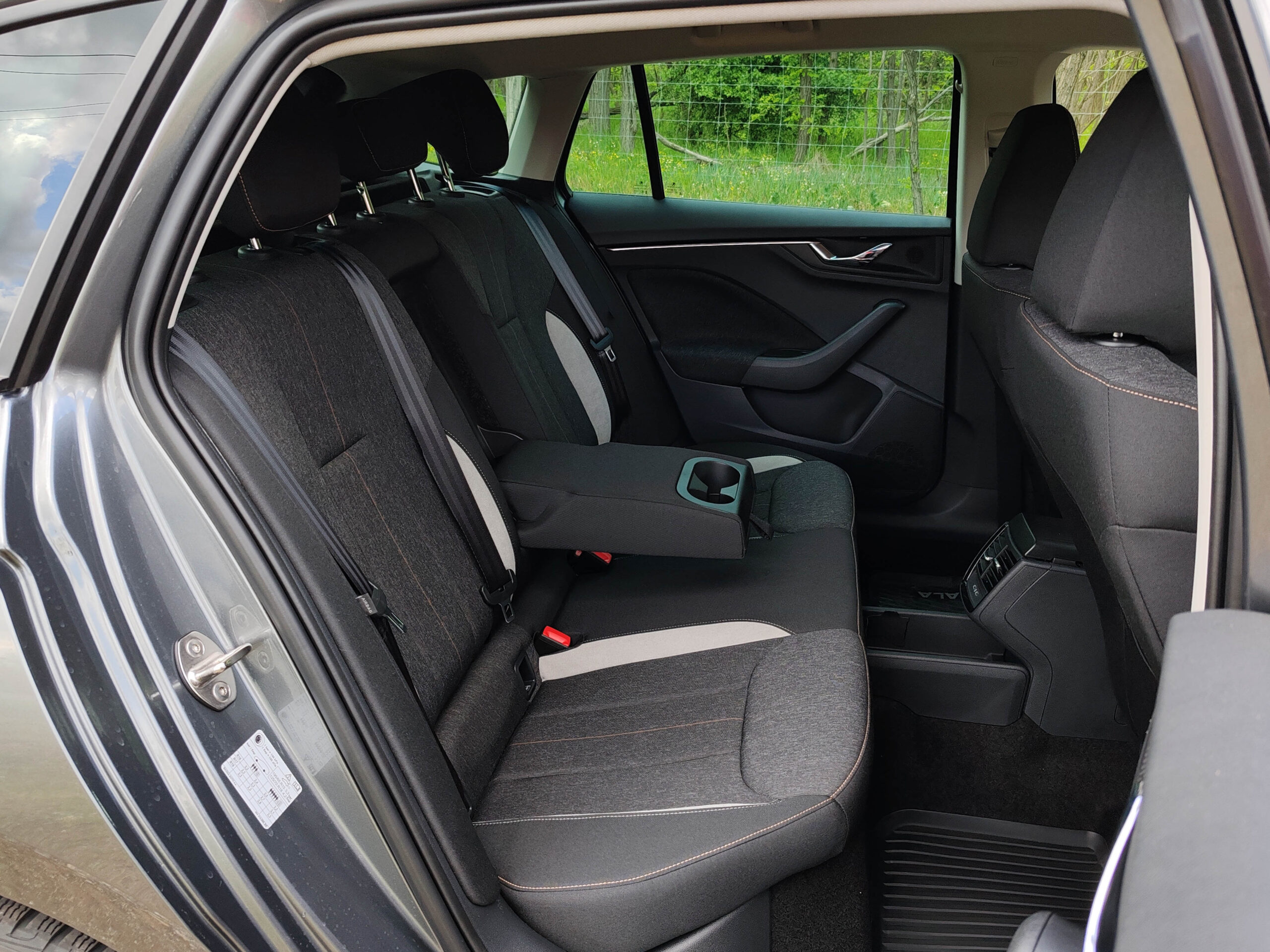 Az utastér azonban nem ér véget a műszerfalnál, az ülések a Selection felszereltségi szint és a Lodge dizájncsomag szövetborításával minőségi tapintást és kiváló tartást kínálnak, mindkét oldalon állítható deréktámasszal rendelkeznek. Így még az autópályás használat sem okozott problémát, akár hosszabb utakra is kimondottan kényelmes autó volt ez a Scala. Hátul sem mondható szűkösnek, már ami a fejteret és a lábteret illeti, szélességében azonban inkább két főre ajánlott a modell, ezt a középső ülés előtt elhelyezett tároló is hangsúlyozza. Szellőzőket, könyöklőt és ruhaakasztókat azonban itt is találni, egyértelmű, hogy legalább annyira szánták céges autónak, mint amennyire családszállítónak a kompaktot.