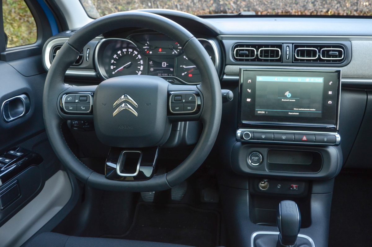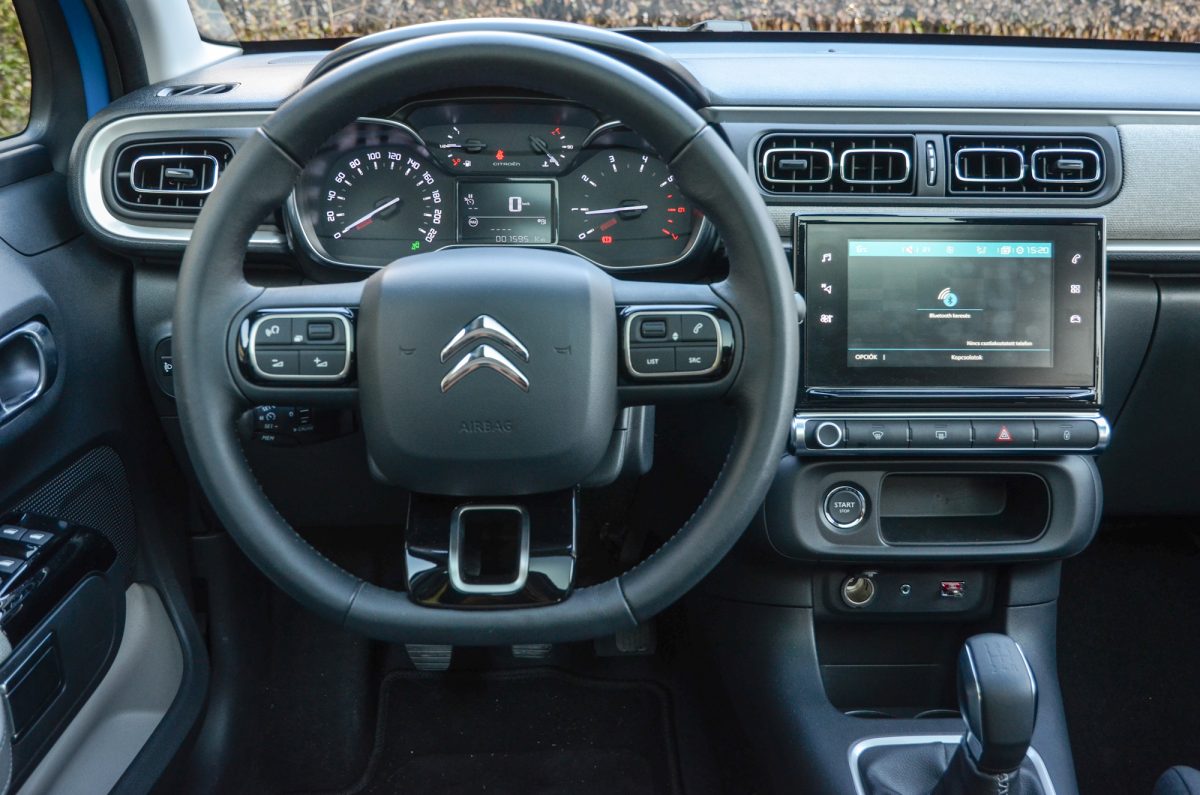 Nyomkodunk vagy vezetünk? Ami viszont hátrányosan érinti a felhasználói élményt és a biztonságot, az a központi érintőképernyő. Lényegében már minden onnan vezérelhető, amit ráadásul alacsonyabbra is helyeztek a több gyártónál megszokotthoz képest. Emiatt a hőmérséklet szabályzásához vagy a ventilátor fokozatának állításához is a menüben kell bolyongani, ahelyett hogy azt vakon megtehetnénk egy tekerőkapcsolóval. Ezt leszámítva teljesen élhető, szerethető a C3. Vidám hangulatot kínál kívül és belül, a csajok mind rajongtak érte, akik látták.