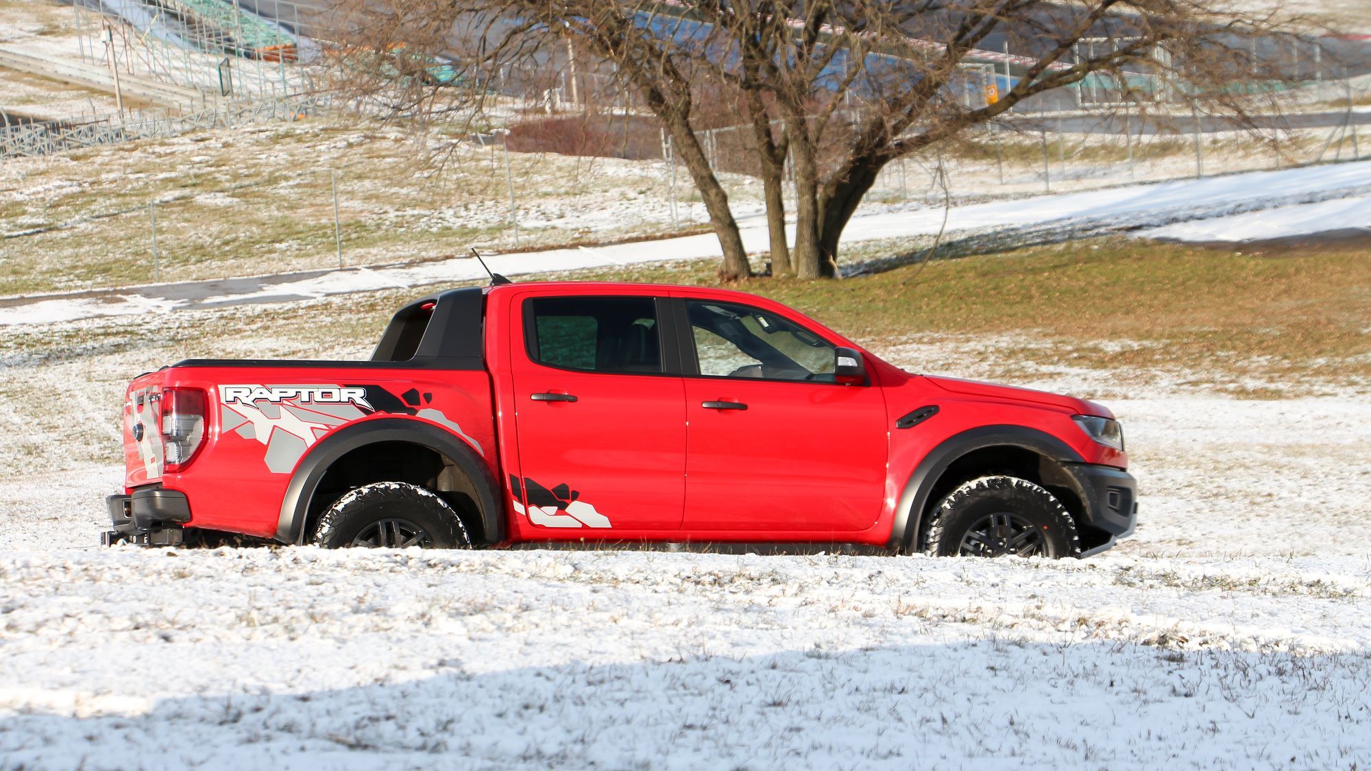 A gyárilag A/T abroncsos Ranger Raptor jelentős előnyt tudott felmutatni terepen, pedig a hajtásláncok alapképlete azonos: alapból hátsó hajtás, fixre zárható összkerék, felezőváltó, hátsó diffizár