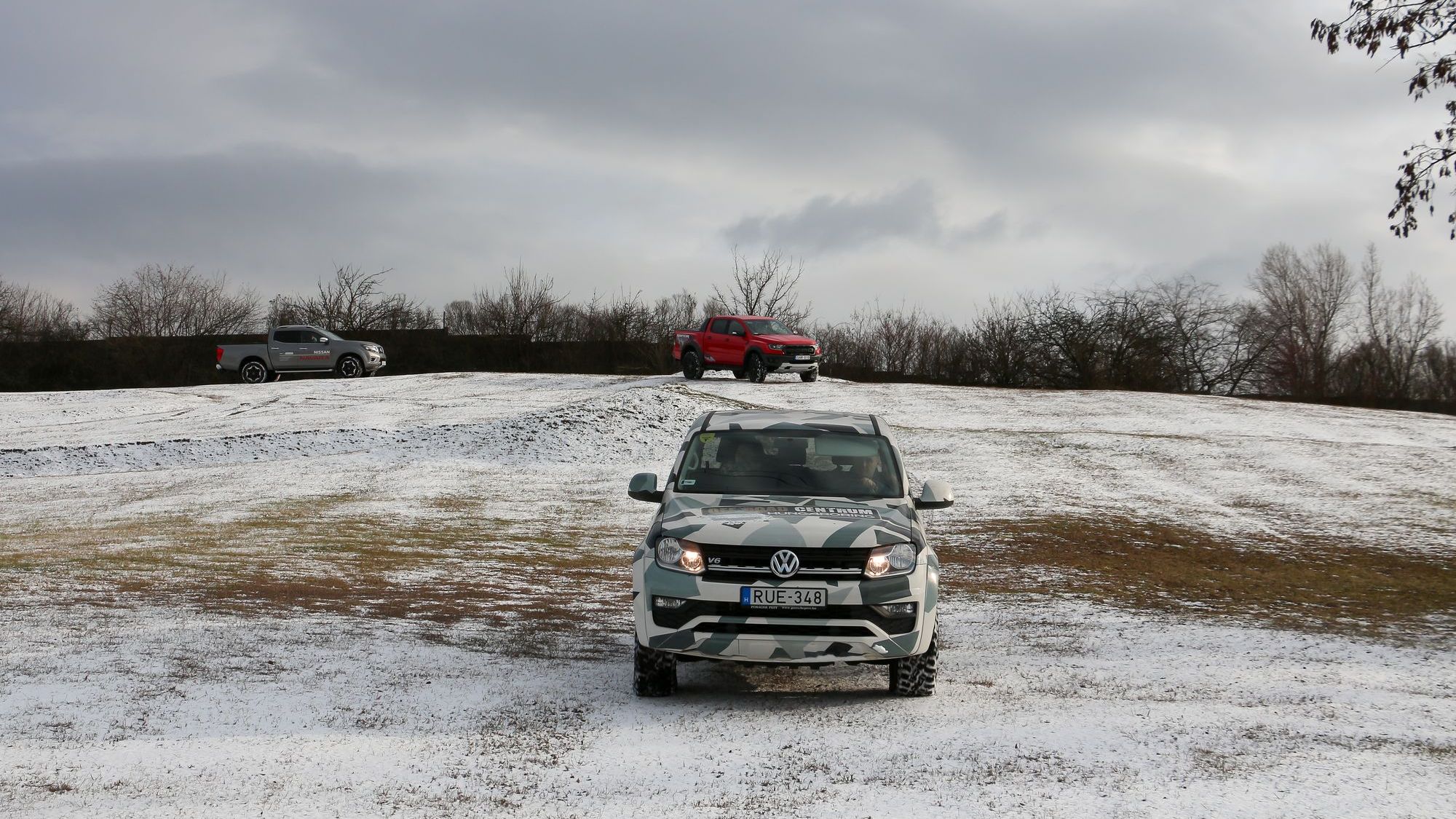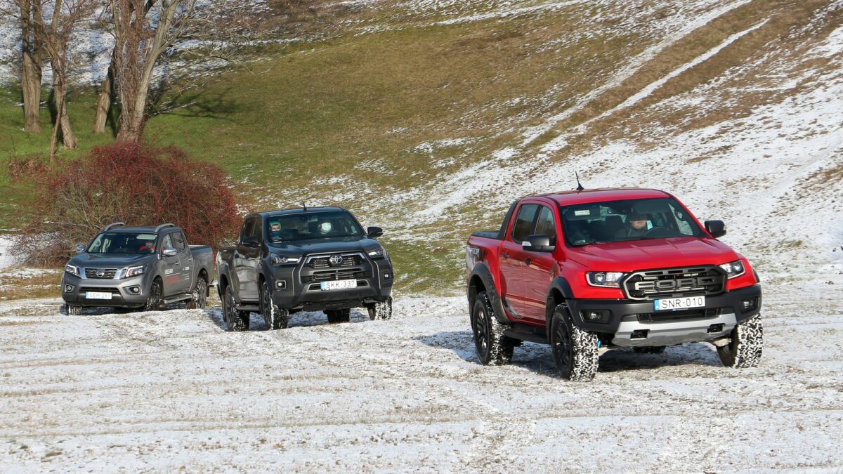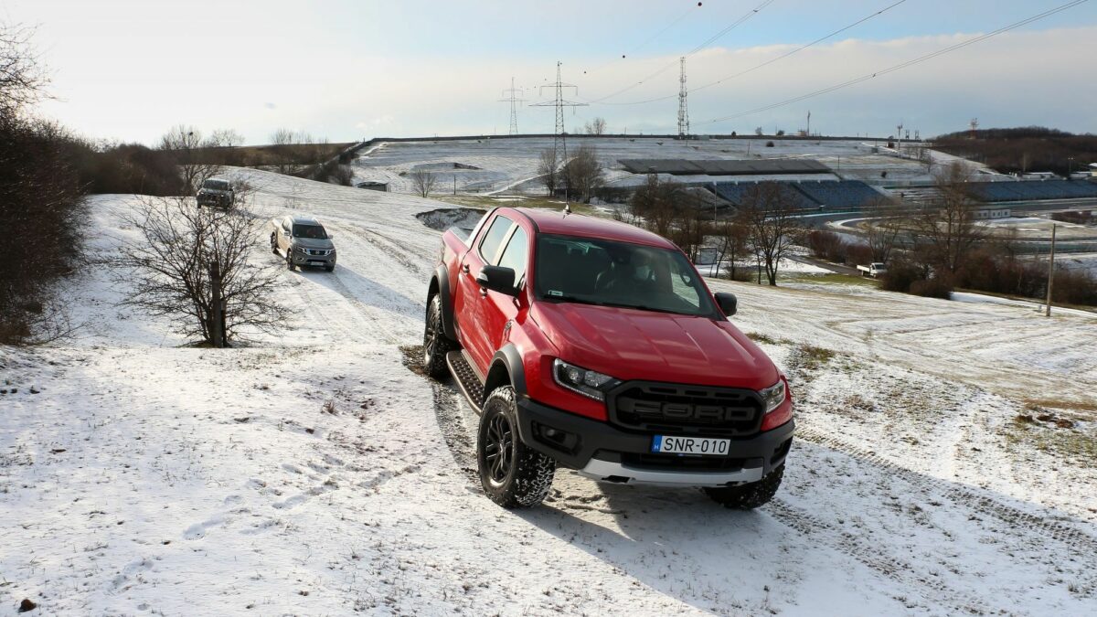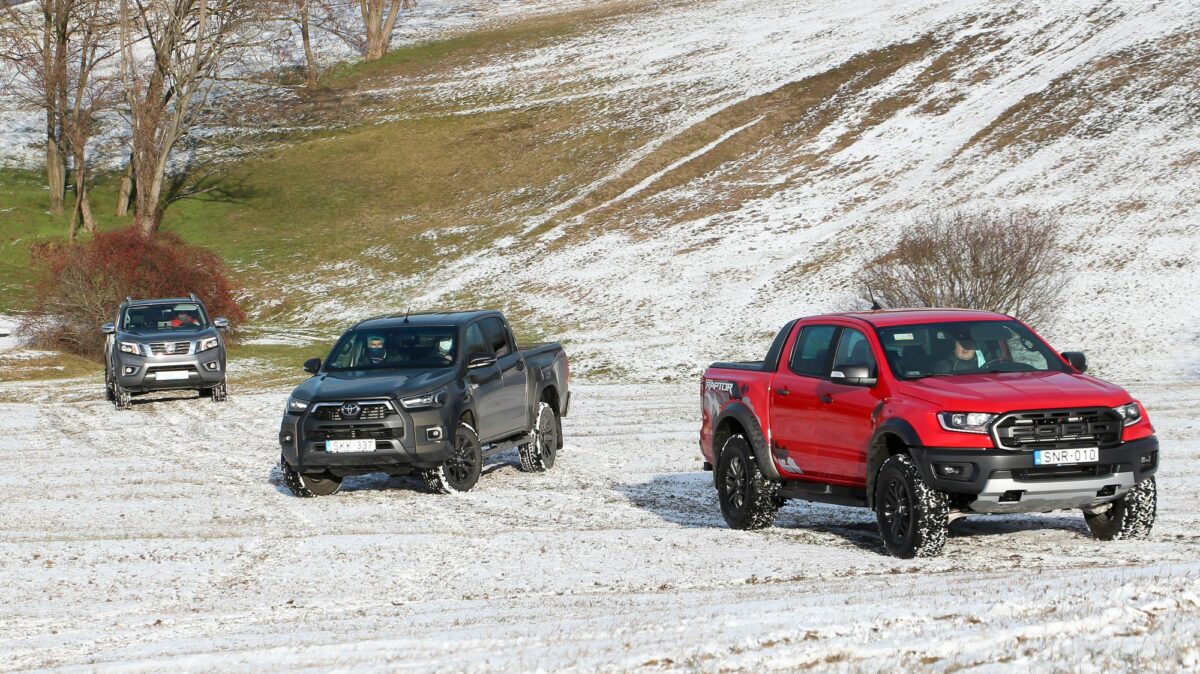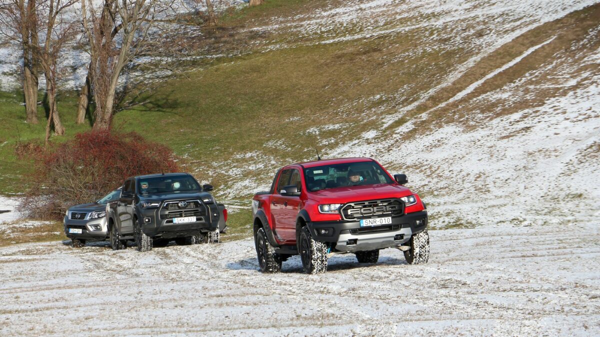 „A meccset nagyon hamar eldöntötte, hogy a díjra nevezett Ranger Thunder helyett érkezett Ranger Raptor alapáron kap hóban is elég ügyes A/T abroncsokat, míg a Navara és a Hilux még csak rendes téli gumiabroncsot sem viselt”