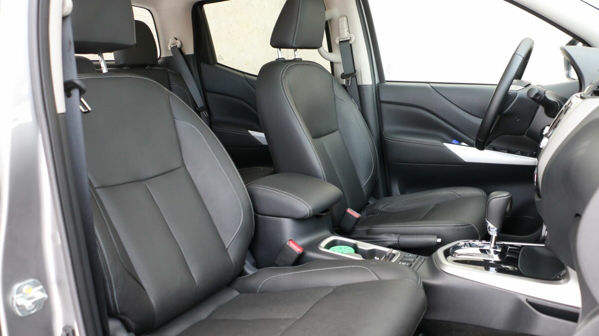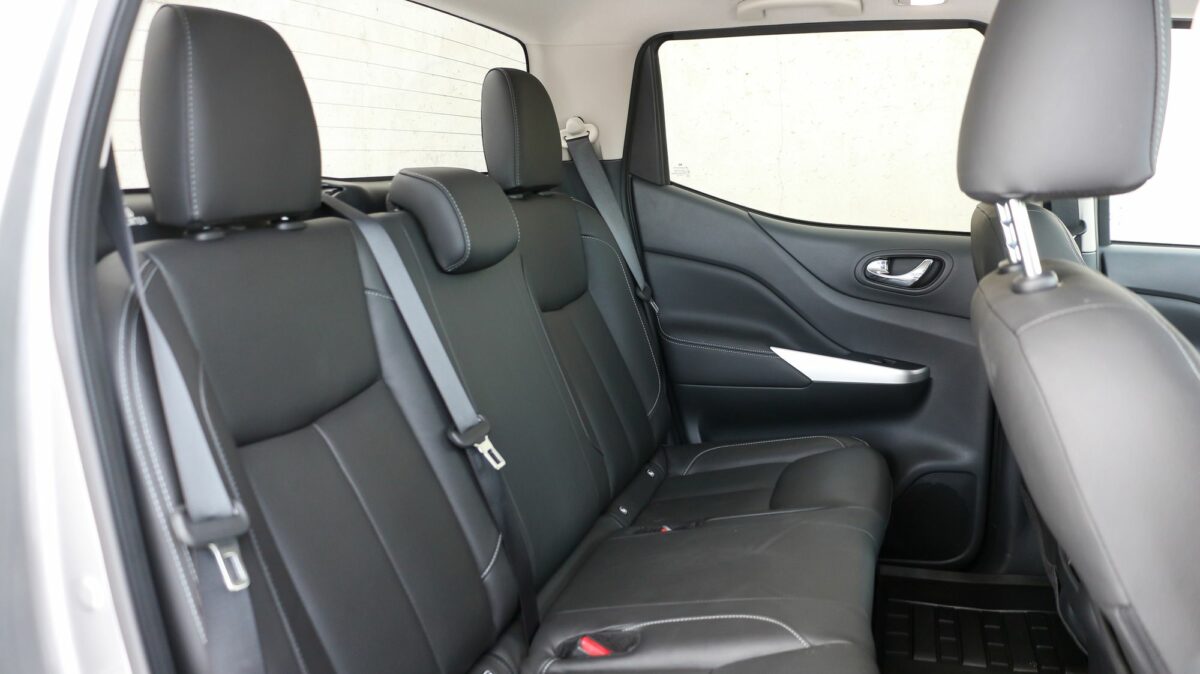 Alapvetően korrekt a Navara beltere, de hátsó padja jelentősebb formázottsága miatt három főnek szűkösebb, mint a Hiluxé