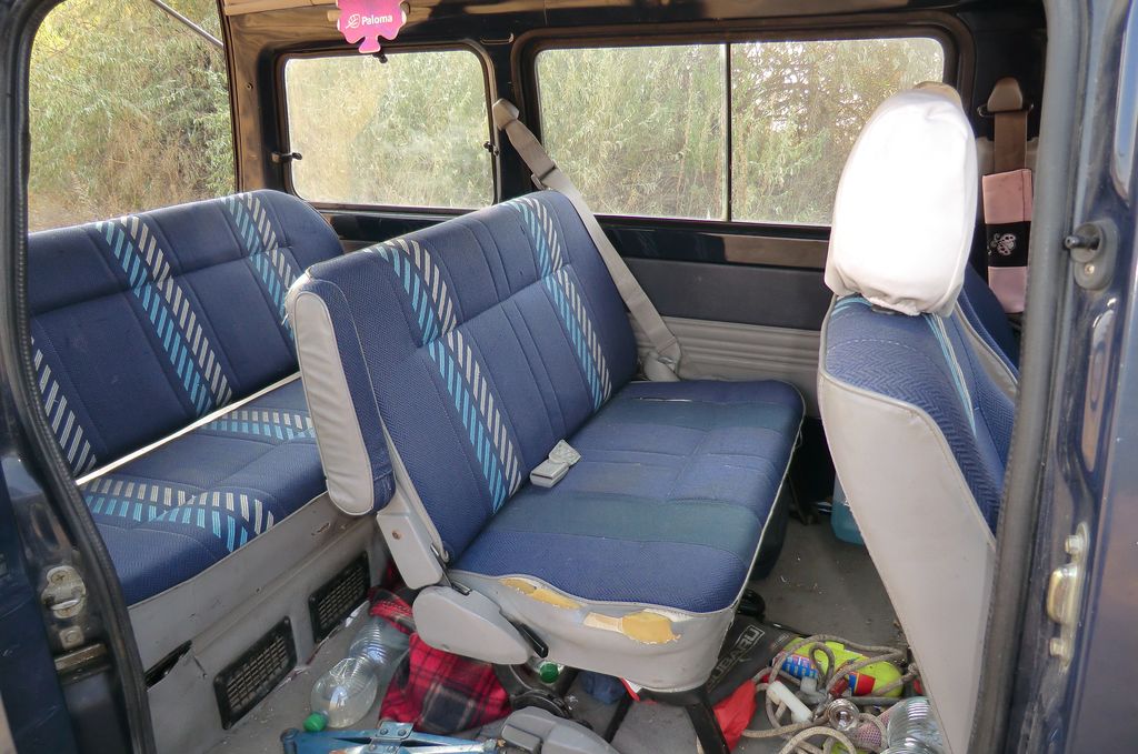 Kopott, de így is látványos a kitűnően variálható utastér. Még a 6, vagy a hátsó sorba 3 ülőhelyet mondva 7 üléses kialakítás mögött is használható méretű a 3,43 méter hosszú Libero csomagtere