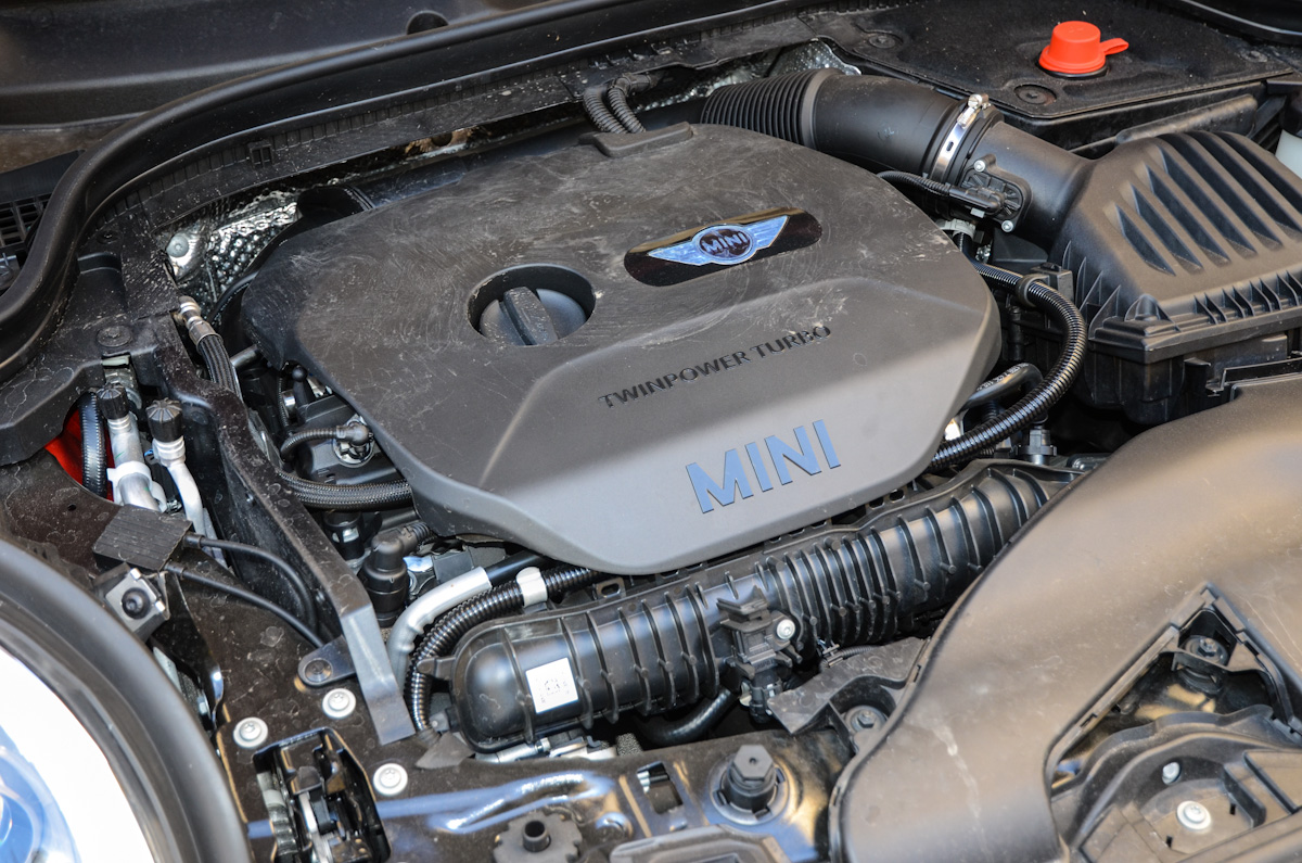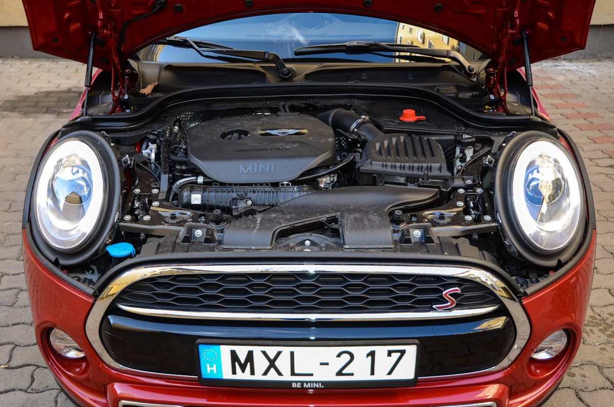 Csendes dízel? Igen! Leginkább így lehet jellemezni azt, amit a 2,0 literes 192 lóerős turbós benzinmotor nyújt. A 280 Nm-es forgatónyomaték nem tűnik olyan soknak, hiszen egy hasonló teljesítményű dízel kb. 400 Nm-rel rendelkezik. Viszont ez a 280 Nm már 1250 1/perc fordulattól rendelkezésre áll, amit nagyon lehet érezni az autó vezetésekor. 1500-as fordulatnál minimális gázpedálnyomásra is meglepő módon indul meg a Cooper S. A turbós motornak hála alacsony fordulatszámon is megvan a csúcsnyomaték, emiatt nagyon dízeles az autó dinamikája. A hangja viszont lényegesen elmarad gázolajos társaiétól. Még szerencse, hogy van benne váltófokozat-jelző, hiszen fül alapján nem igazán lehet váltani, annyira csendes normál használat során a kis Mini.