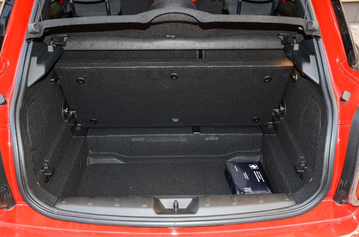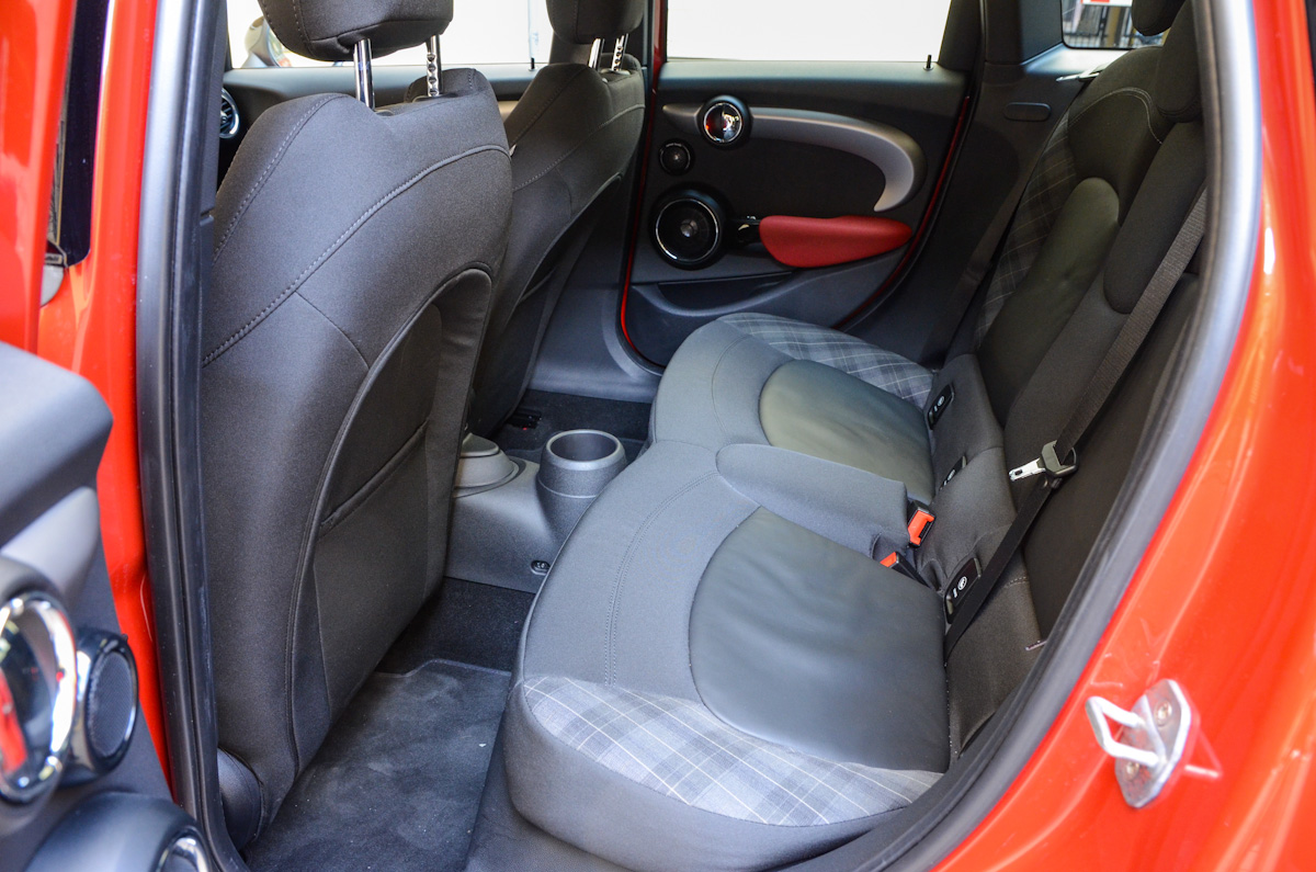 Családi autó? A kistestvér, háromajtóshoz képest 16 centivel lett hosszabb és 7 centivel nagyobb a tengelytávja is. A plusz két ajtó hasznos, a hátsó üléssor anélkül érhető el, hogy az elöl ülőknek ki kellene szállniuk. A hátsó ajtók viszonylag kicsik, azok kinyitásakor sem nagy a nyílás, ügyesen kell bepattanni a hátsó ülésekre, ahol már meglehetősen tágas hely fogad. Legalábbis a szélső üléshelyeken. Itt valóban érezhető a méretnövekedés, 180 cm magas vezető mögött kényelmesen fér el egy felnőtt utas. A középső hely városon belüli utazások alkalmával elég lehet, de hosszabb távon kompromisszumosnak ígérkezik felnőttek részére. Maradjunk abban, hogy a Mini négy személynek valóban kényelmes lehet, akár hosszabb távon is. A csomagtartó is hízott, az ötajtósban 278 literes térfogat várja a poggyászokat. A raktér padlója süllyeszthető, amellyel több helyet nyerhetünk, ha ez kevés, akkor pedig a hátsó üléstámlákat is ledönthetjük 40:60 arányban.