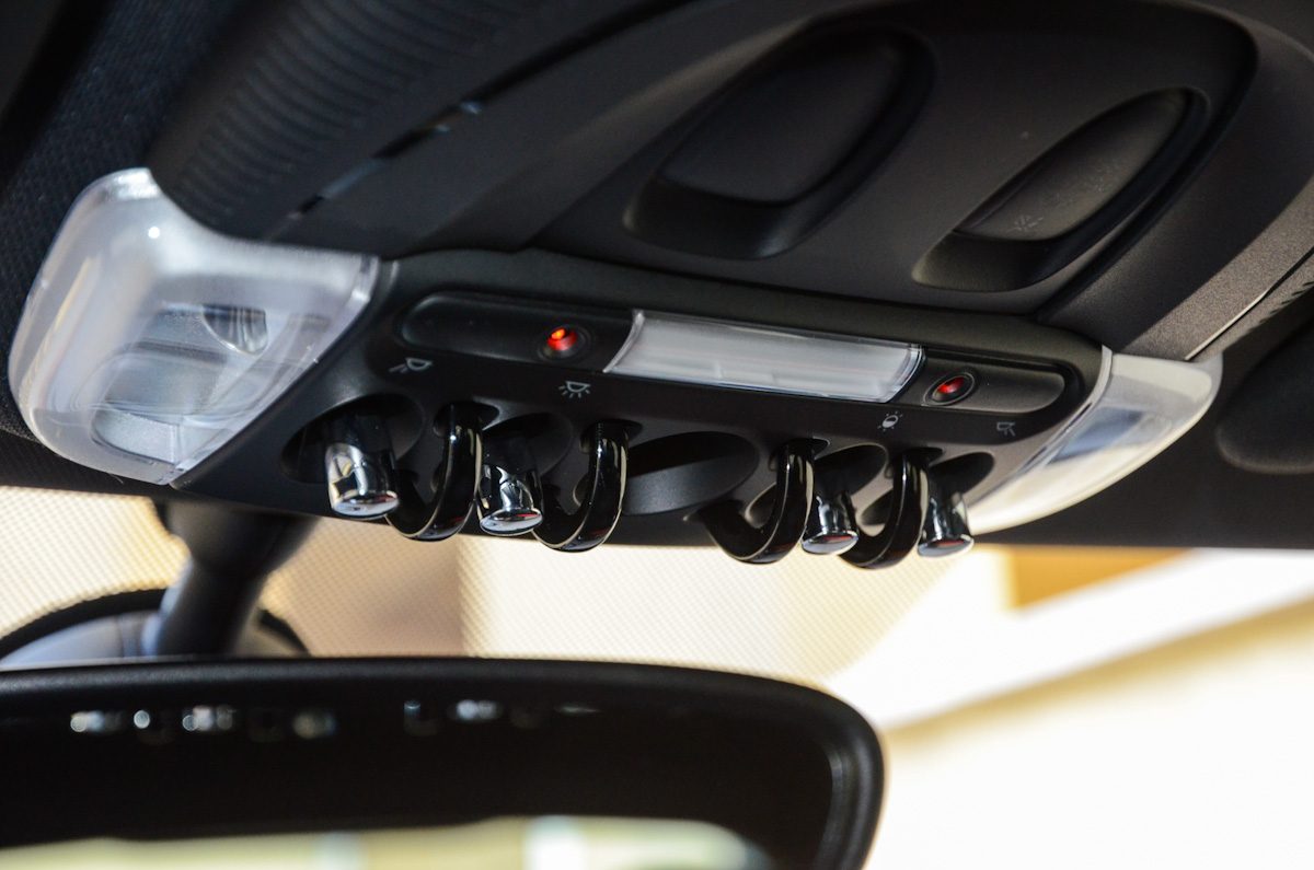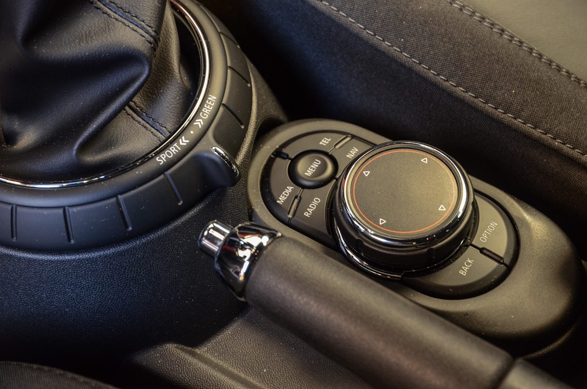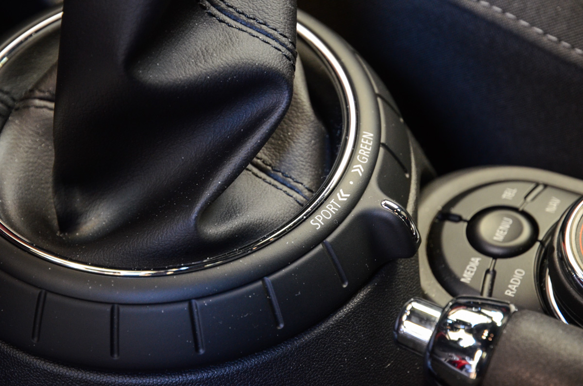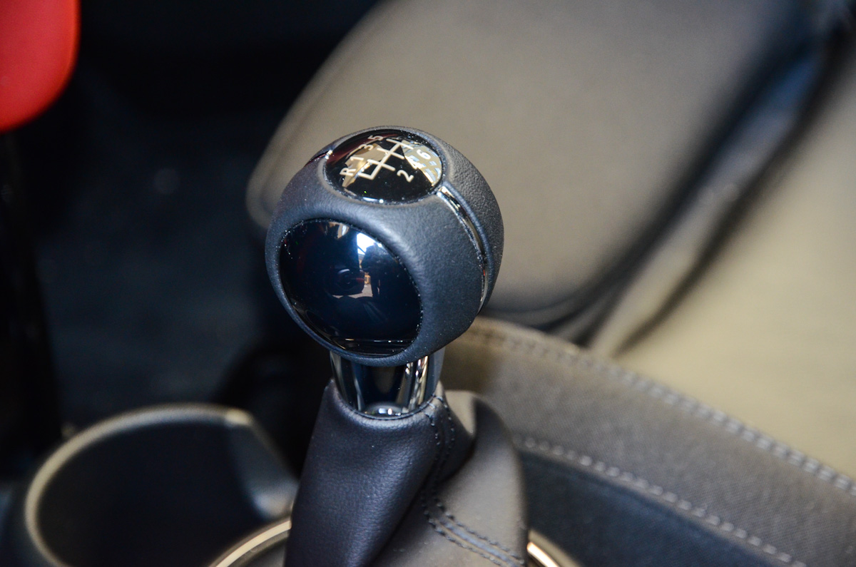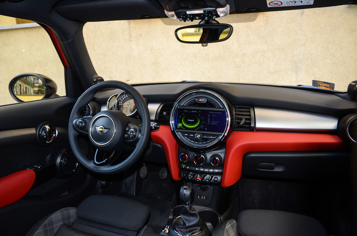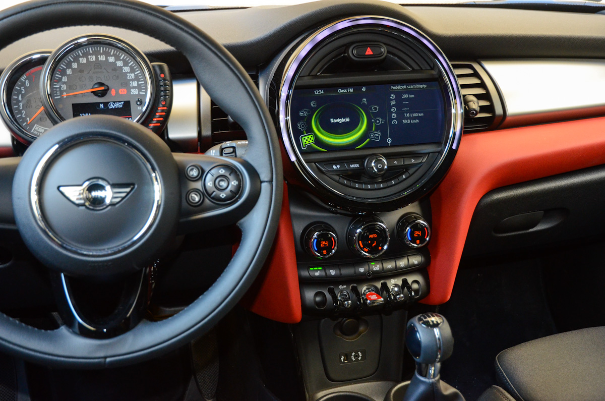 A kormány és a váltókar rendkívül jó fogású. Utóbbi pontos, rövid úton jár, a kormányzás közvetlensége miatt pedig az ötajtós Mini is úgy viselkedik az úton, mint egy igazi versenygokart