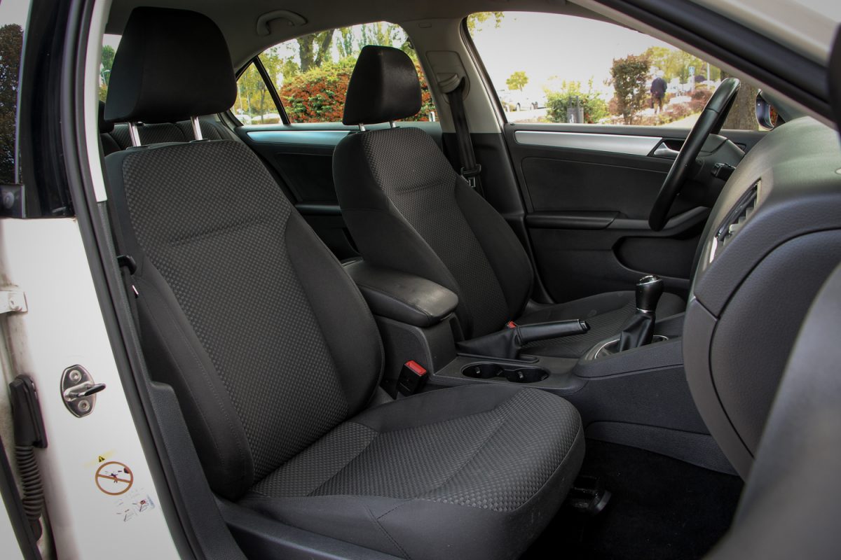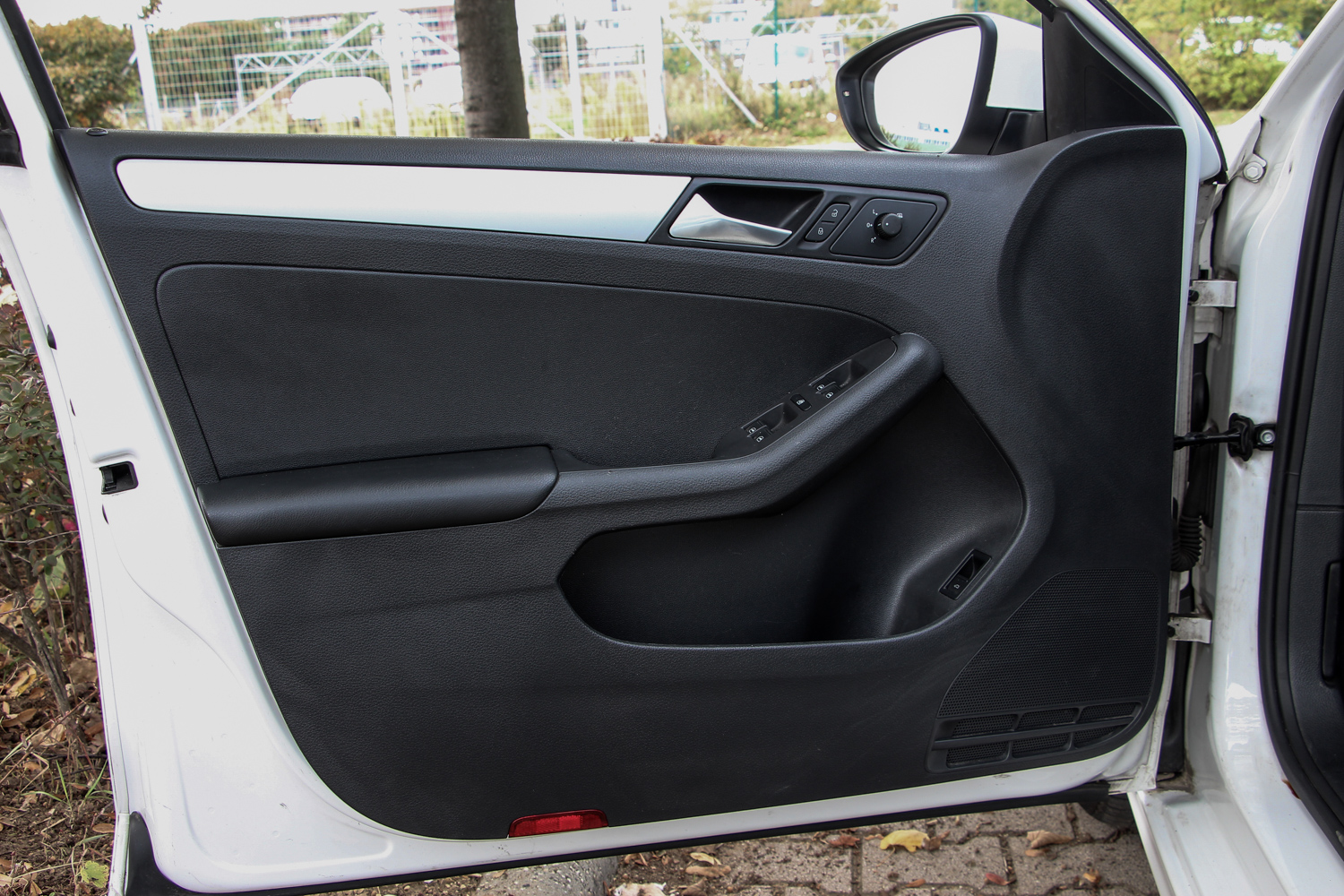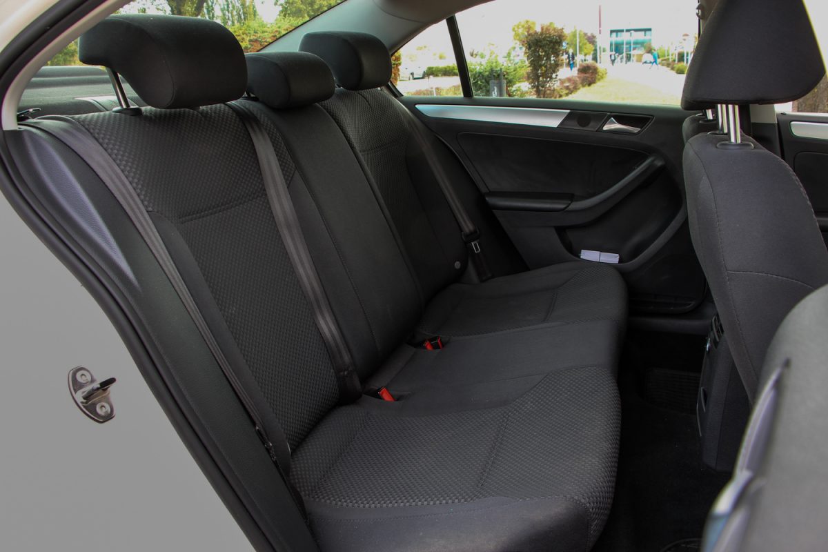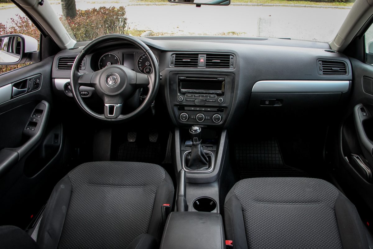 A beltér kopásai nem jelentősek, egyedül a kormány bőrözését viselték meg az évek, valamint a vezető ülésén látható minimális kopás. Felszereltsége érdekes, nálunk a Trendline-ban anno benne volt a kanyarkövető ködlámpa, itt viszont olyan nincs. A kilincsek fényezettek, ám a hűtőrács sima fekete, nem krómozott. Használója szerint hosszú távon kényelmetlen az ülés, amin sokat segítene az állítható deréktámasz, ám az nincs, viszont van tempomat, ami az autópályás felhasználás mellett nettó öröm. A kétzónás digitális klíma hibátlanul működik, ahogy a folyadékkristályos kijelzőn képet adó első-, hátsó parkolóradar is. A CD-s fejegység egyébként bluetooth kihangosítós, ami viszont túl halk, ahhoz, hogy használható legyen. Van itt még egy érdekes megoldás, az AUX és USB csatlakozást egyszerű kábelekkel oldották meg, amiket a középkonzol tárolójából húzhatunk ki. Végtelenül unalmas egy ilyen Jetta, ám van abban valami tiszteletreméltó, hogy ilyen mostoha használat mellett is komolyabb problémák nélkül visel évi 50 ezer kilométert.