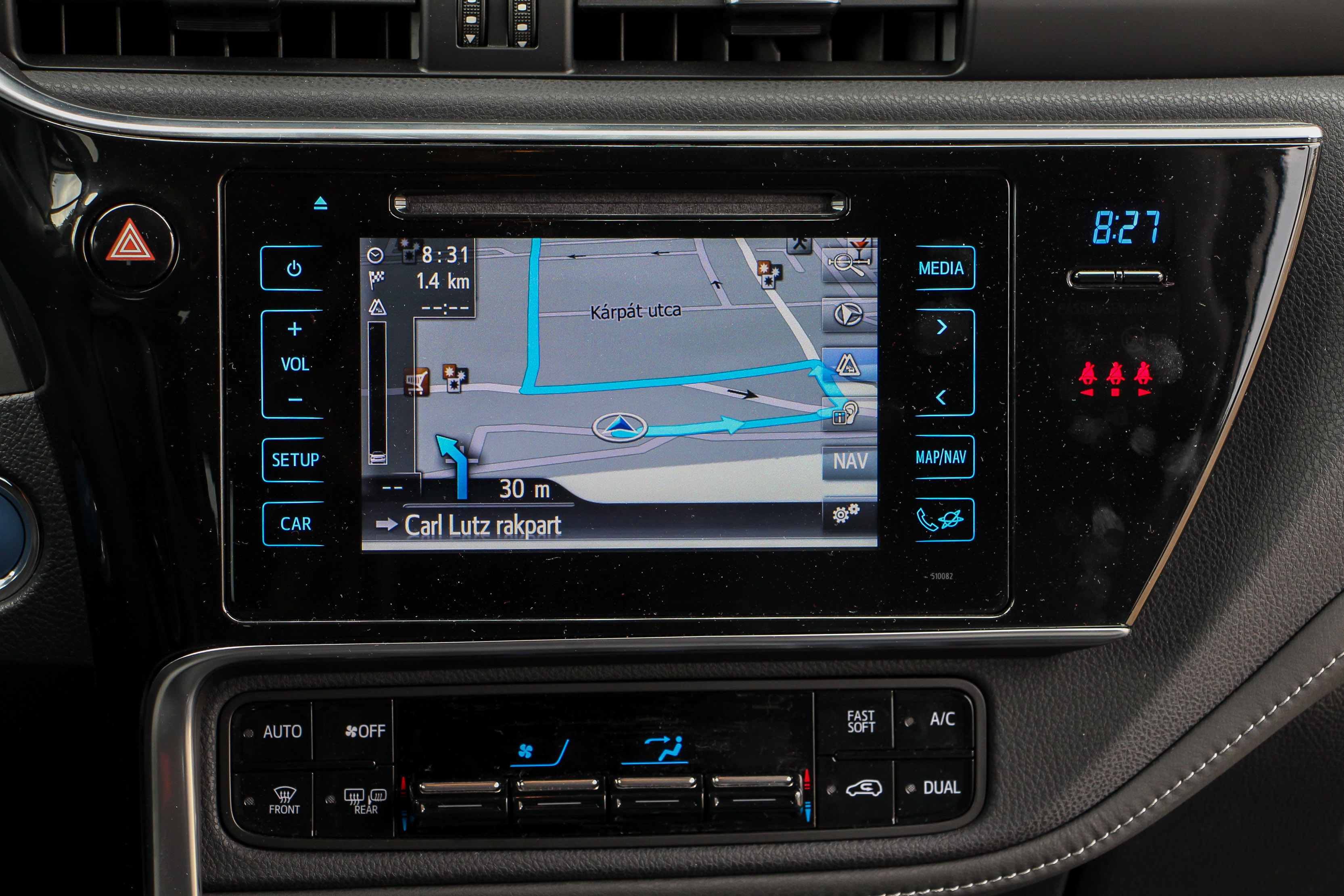 Nem csak elvben jó. Technikai csemegeként még mindig egyedülállónak tekinthető - a kompakt kategóriában mindenképp - a Toyota hibridrendszere. De tegyük félre a változó szelepvezérlésű Atkinson ciklusú motort, az erőátvitelt és a fékenergia-hasznosításra is képes, azaz fékezéskor az akkumulátort töltő, amúgy a benzinmotort is észrevétlenül indító motort, nézzük azt, hogy mit kap a vevő, aki csupán az autót látja az Aurisban. Minőséget, amit már az ajtók nyitási és zárási hangja is megad. Finomak az utastéri - szinte mindenhol puha, kellemes tapintású - műanyagok. Sokat fejlődött a műszerfal, ami ugyan egy kicsit a sofőrre növő, de az Executive szintnél már egy vékonyka sávnyi varrott bőrt is felvonultató; ilyen, azaz puha borítású a középkonzol vezetőoldali széle is, ami bizony kellemes. Prius II-ből átülve én mondjuk jobban örülnék, ha a középkonzol nem folyna az ülések közé, ha a rögzítőfék nem a hagyományos karos, hanem pedálos lenne, ám a vevőknek állítólag ez kell, konzervatívabbak. Sokakat például az is zavar, hogy nem ők váltanak, hanem elektronika szabályozza a hajtáslánc áttételét, a motorhasználat intenzitását. A sebességváltás lehetőségét hiába keressük, azonban immár elegáns fekete betétes a váltógomb, ami persze továbbra is csak egy irányváltó kapcsoló, a fokozott motorféket adó B-móddal. Új a klímavezérlés és a központi kijelző, illetve annak környezete is.