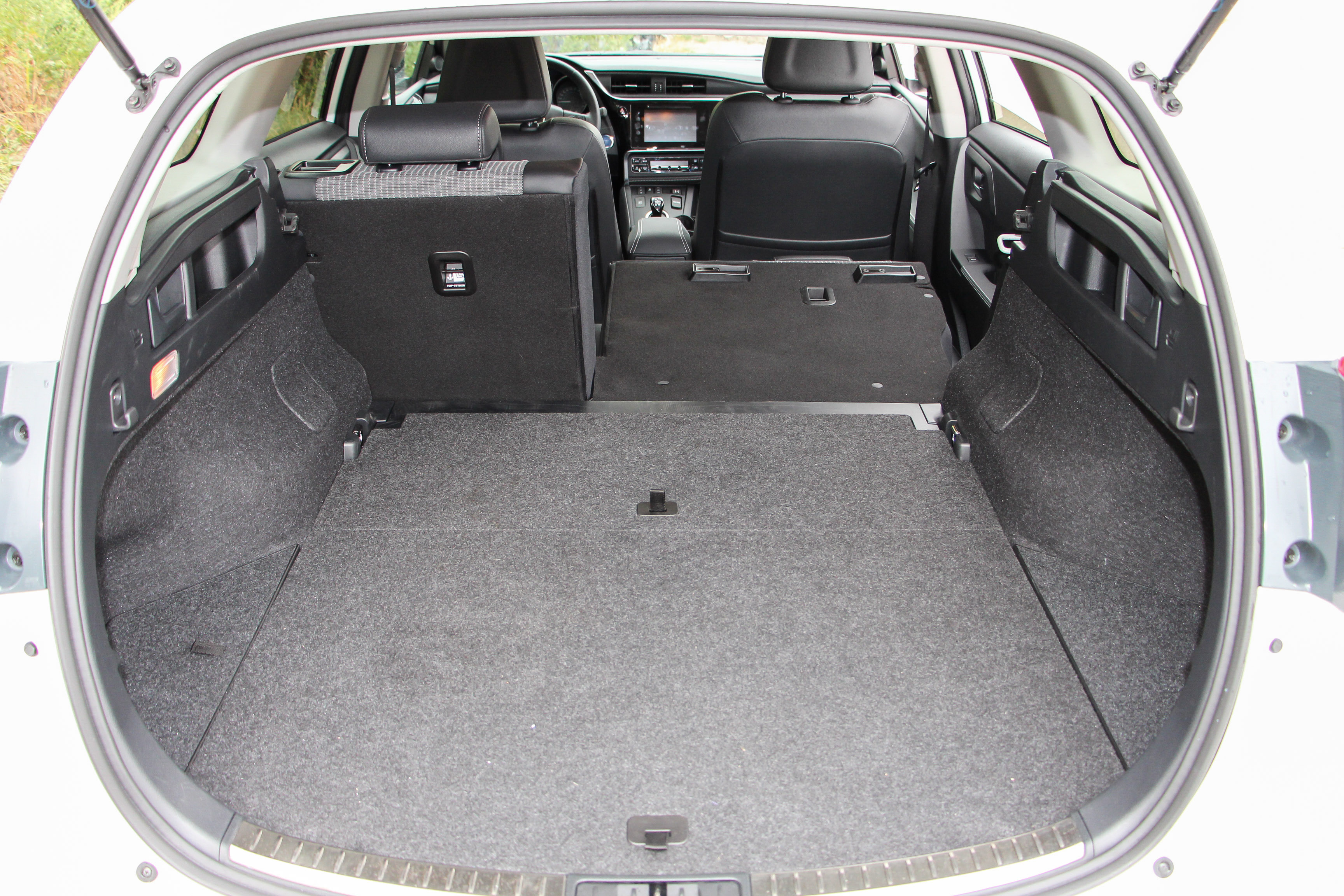 Konzervatív, de korrekt kombi. Értem én, hogy a hibridek forradalmát hozó, második generációjával a 2005-ös Év Autójának választott Prius formáját szokni kell, viszont az Auris Touring Sports (nyilván a vevői elvárásoknak megfelelően) nekem túlzottan konzervatív. Egy hagyományos, méretes alsó-középkategóriás kombi. Kívülről csak egy-egy felirattal megkülönböztetve, amúgy ma már ugyanazokkal a felszereltség-szintekkel, amelyekkel a csupán benzines és a dízel verziók is elérhetők. Nem is néz ki rosszul, orra talán harmonikusabb, ugyanakkor kevésbé markáns, mint a frissítés előtt. Van megjelenése, még akár középkategóriás modellek közé is gond nélkül oda lehet vele állni. Utastere elöl tágas, hátul éppen elegendő lábterű, négy felnőttnek, kétgyerekes családnak korrekt. Isofixes gyerekülés a kategóriától megszokottan csak a hátsó szélső helyekre rakható - azokra sem egyszerűen, elég mélyen vannak a rögzítők. A csomagtér viszont nagy, 530 literes, küszöbmentes nyílású, álpadlós. Utóbbi persze ki is vehető, le is süllyeszthető, ráadásul osztott: hátul egy szintén kivehető apró ládika is akad. Pakolászni bőven lehet, nagyobb cuccokhoz a hátsó ülések (természetesen 2/1 osztással) egy-egy kar meghúzására az álpadló síkjába hajhatók. Közel 1,9 méter hosszú, több mint egy méter széles rakteret kapunk így.