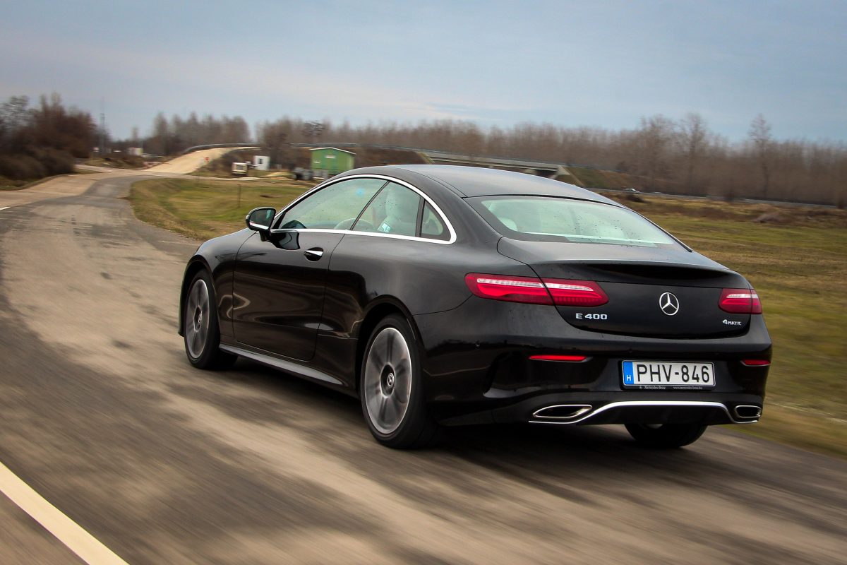 Az E kupé a fény és a pompa a kétajtós kupék között, a 400-as hajtás precíz, mégis valójában mindegy, mi van a géptető alatt.